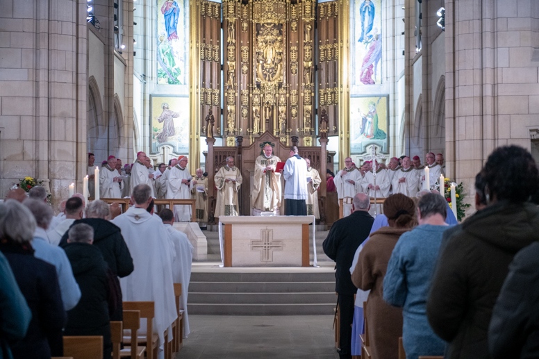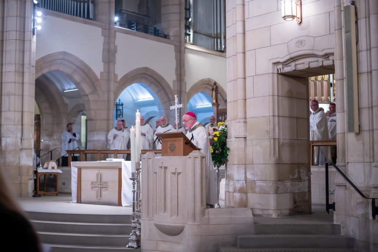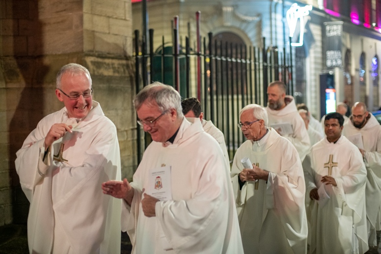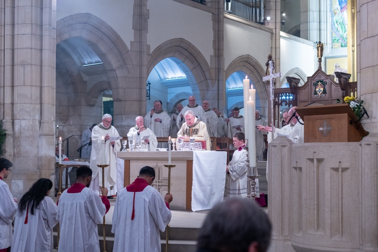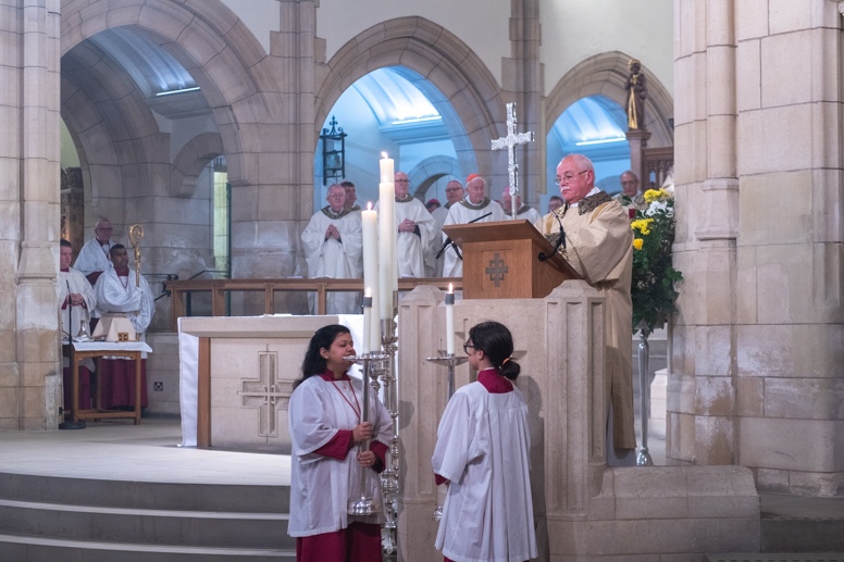 At the beginning of the Mass, Bishop Marcus had words of welcome for the concelebrants and the congregation, and especially for Cardinal Roche. At the same time, the Bishop said how proud the people of the Diocese were that someone born, raised, and ordained in the Diocese of Leeds had been honored by Pope Francis through his appointment to the College of Cardinals.