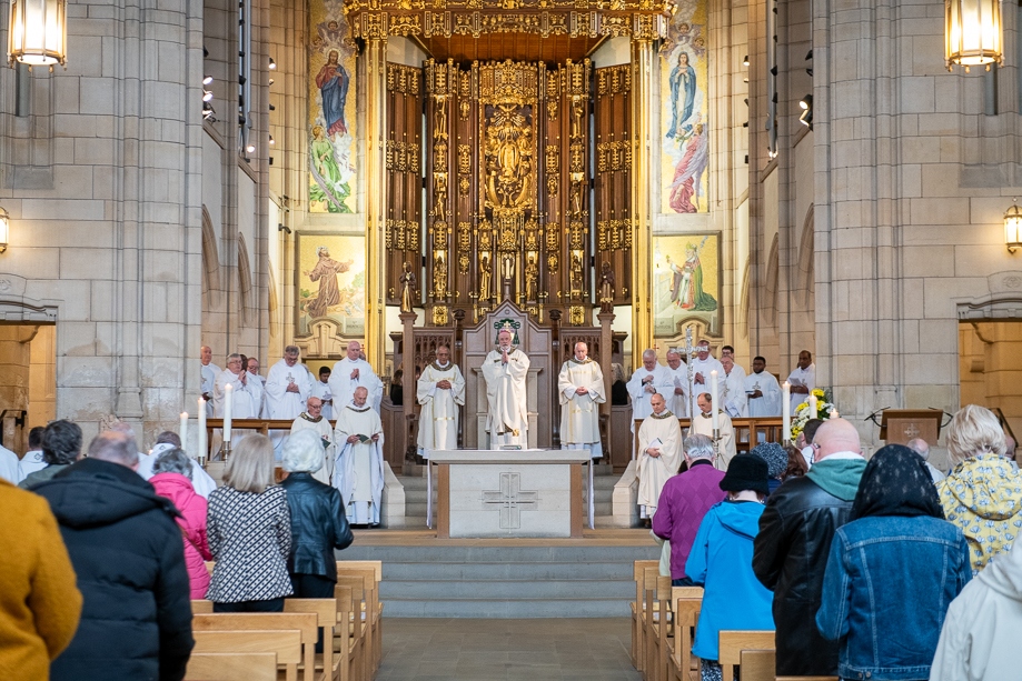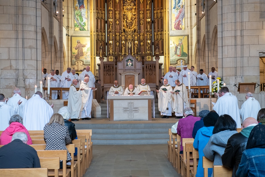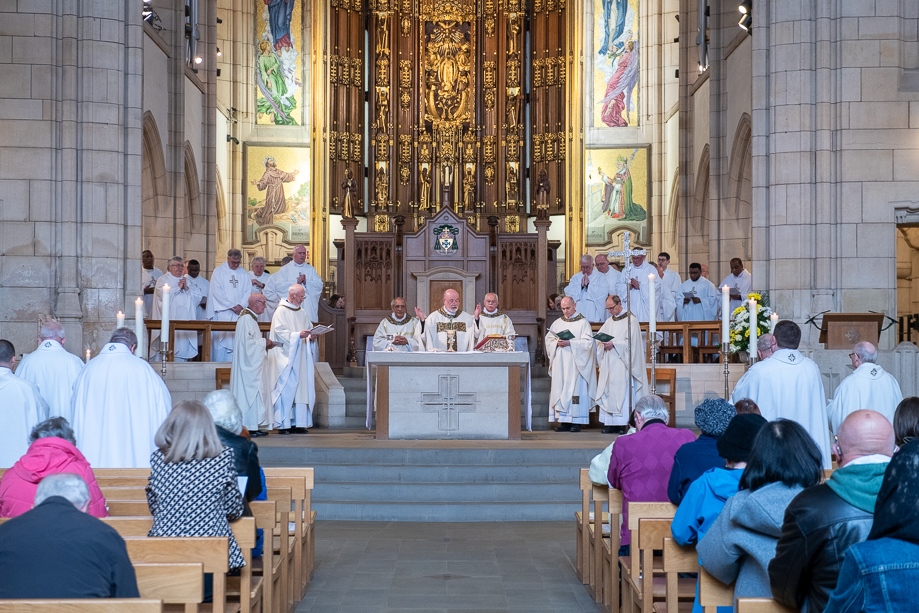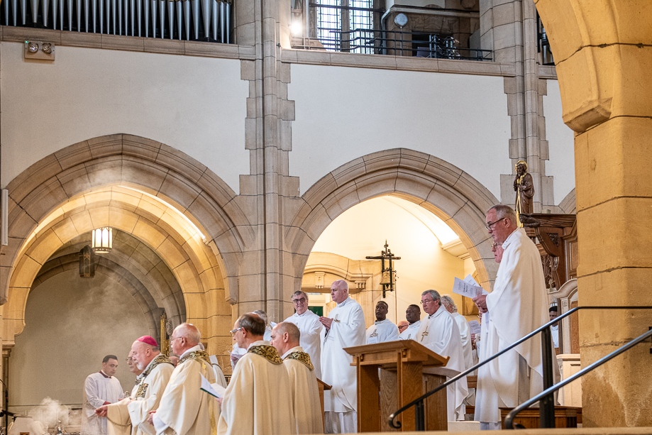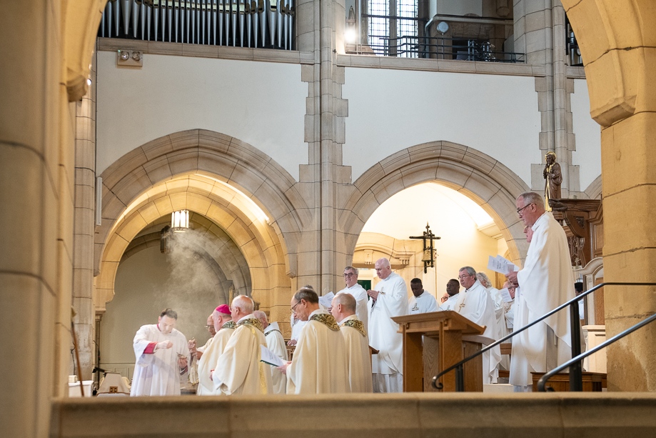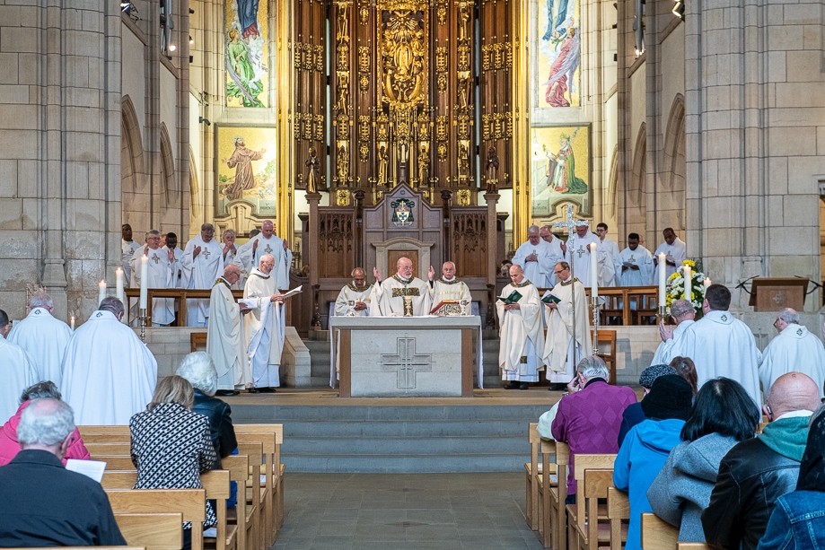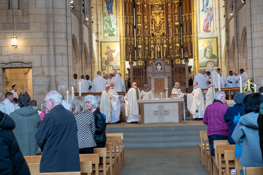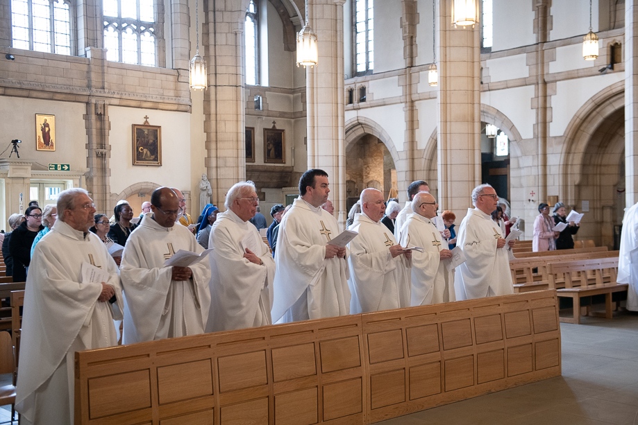 Thursday 23 May, the feast of Our Lord Jesus Christ, The Eternal High Priest, was the occasion for the annual Celebration of Priesthood. Bishop Marcus led the Mass at Leeds Cathedral which marked this very special date in the diocesan calendar. the Bishop was joined by a large number of concelebrating clergy, including those priests celebrating a jubilee of ordination during 2024.