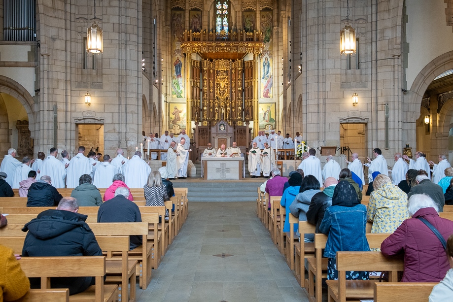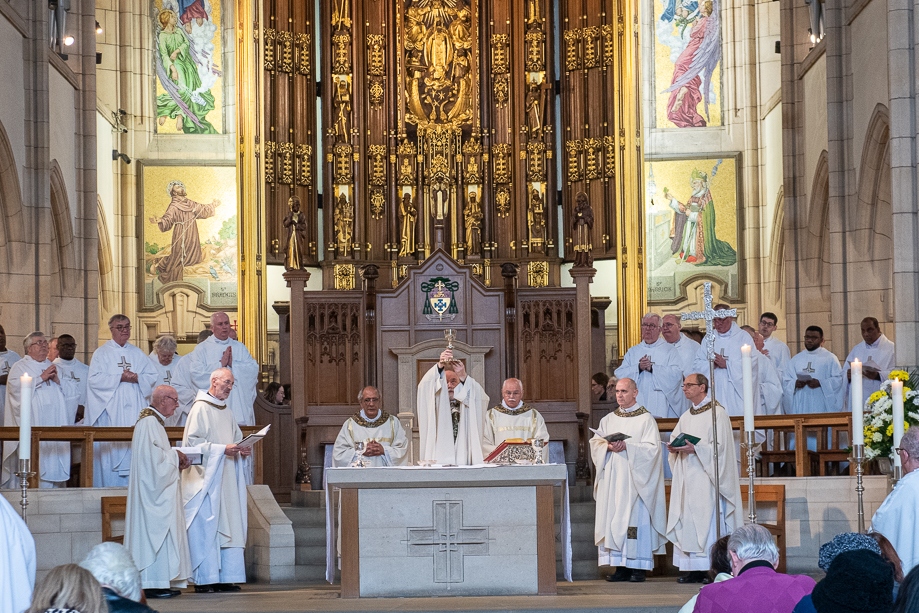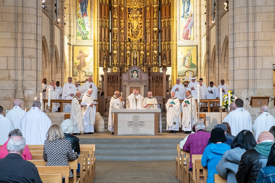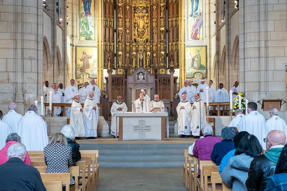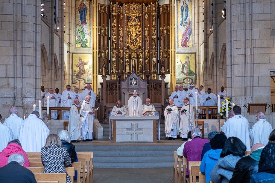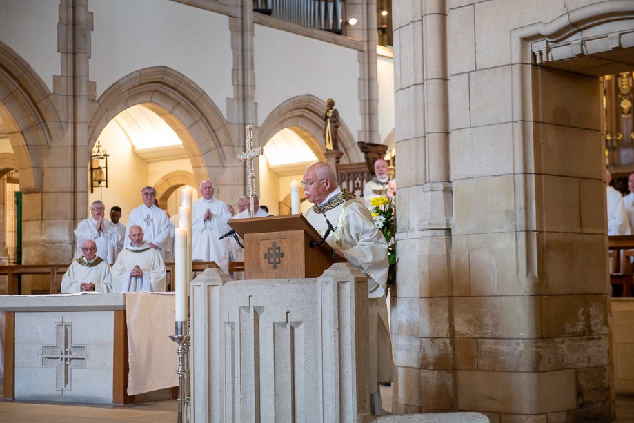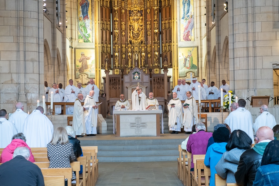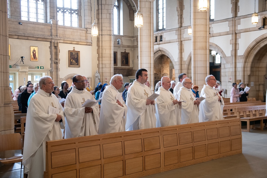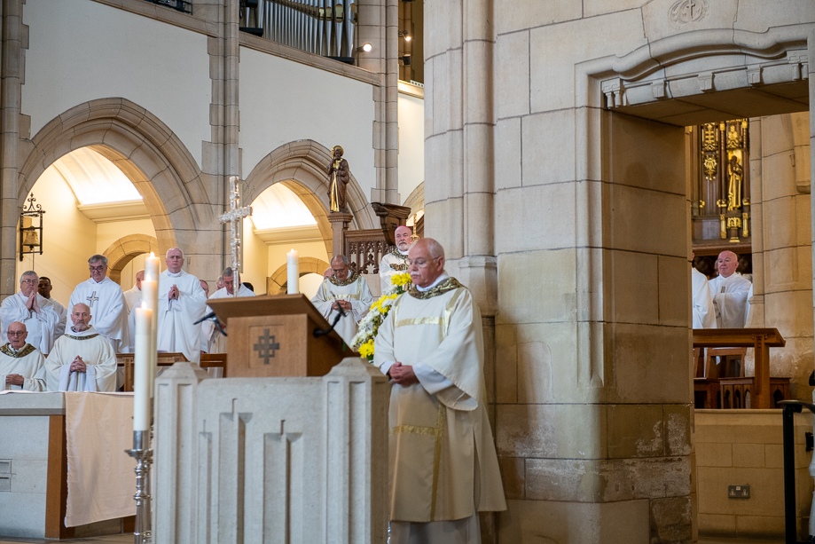 Thursday 23 May, the feast of Our Lord Jesus Christ, The Eternal High Priest, was the occasion for the annual Celebration of Priesthood. Bishop Marcus led the Mass at Leeds Cathedral which marked this very special date in the diocesan calendar. the Bishop was joined by a large number of concelebrating clergy, including those priests celebrating a jubilee of ordination during 2024.