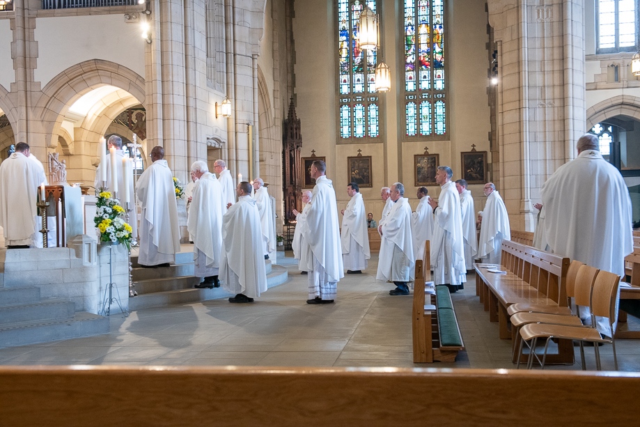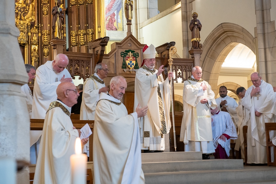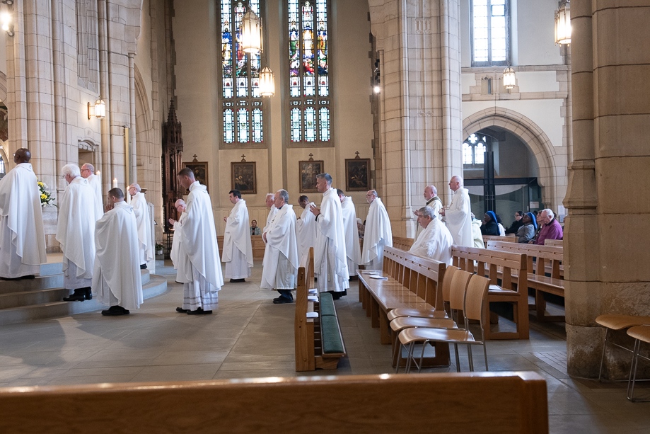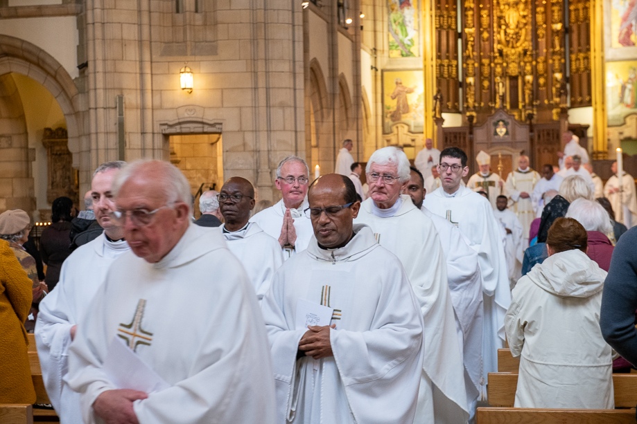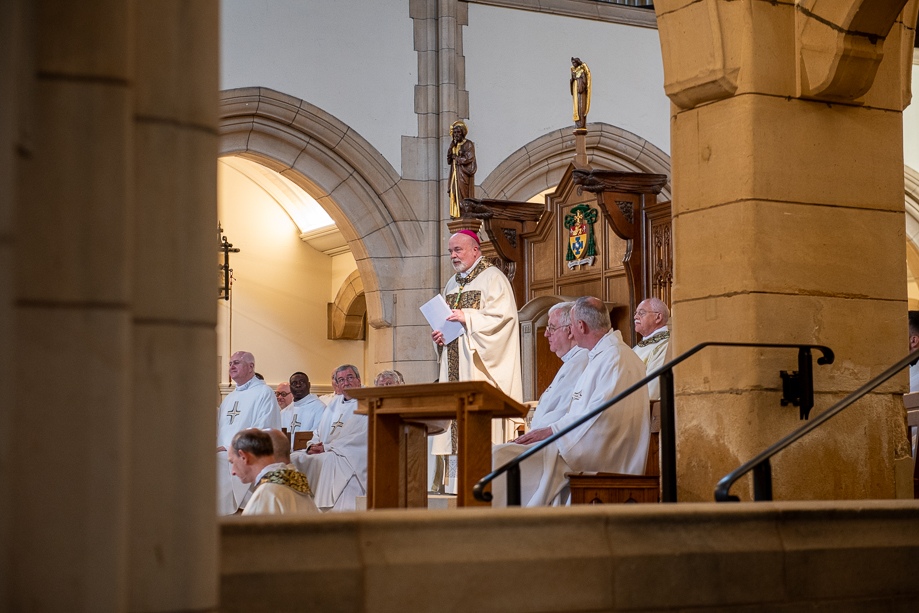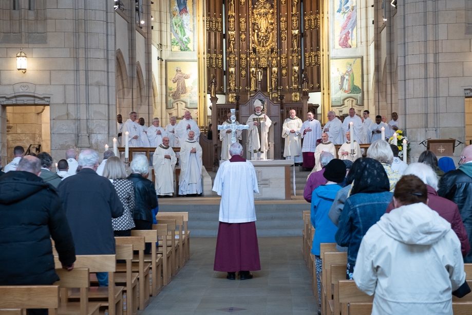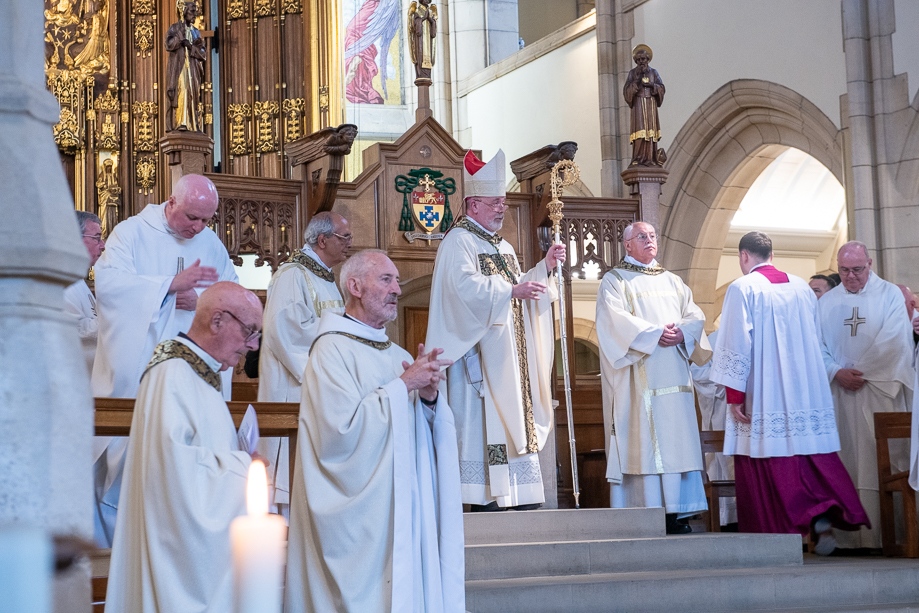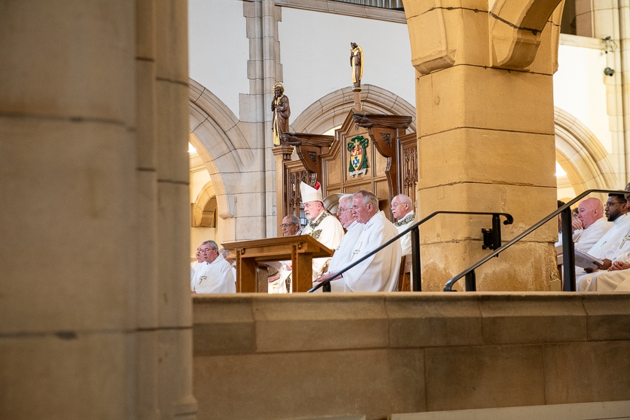 Thursday 23 May, the feast of Our Lord Jesus Christ, The Eternal High Priest, was the occasion for the annual Celebration of Priesthood. Bishop Marcus led the Mass at Leeds Cathedral which marked this very special date in the diocesan calendar. the Bishop was joined by a large number of concelebrating clergy, including those priests celebrating a jubilee of ordination during 2024.