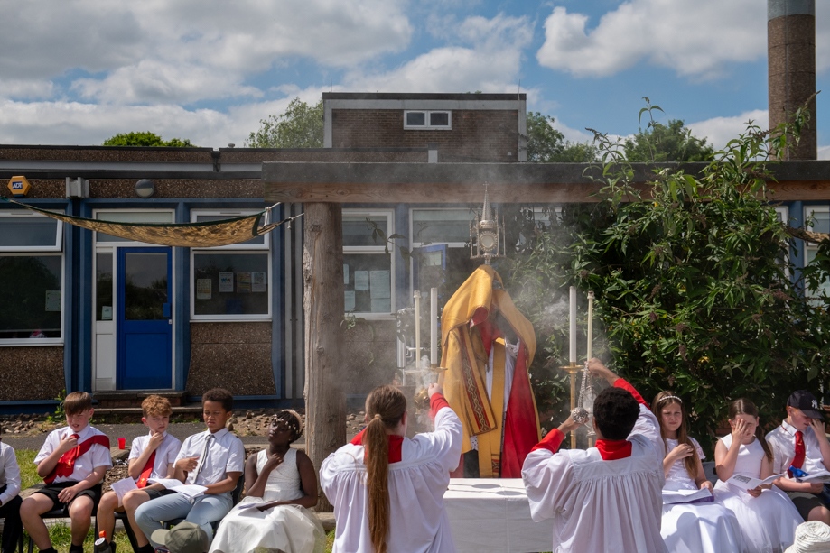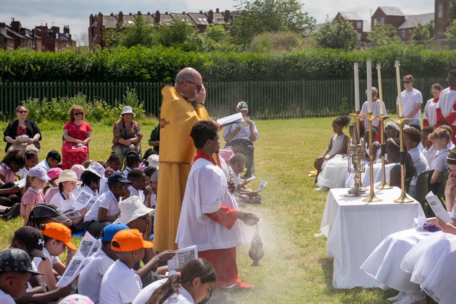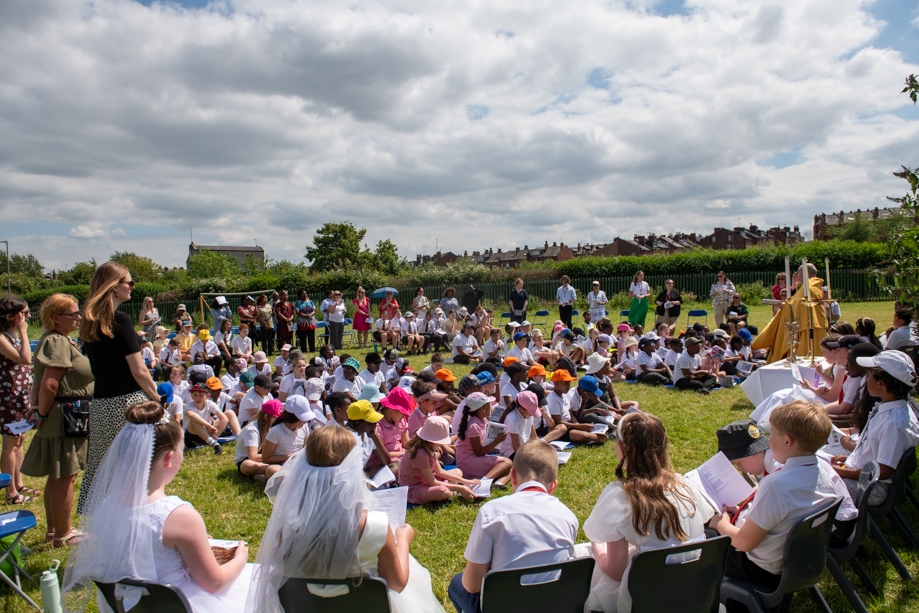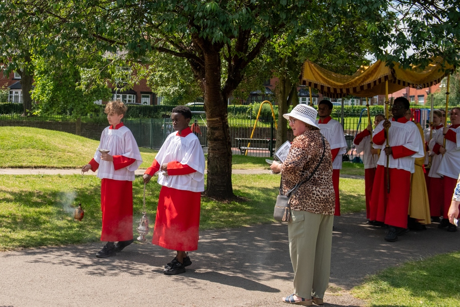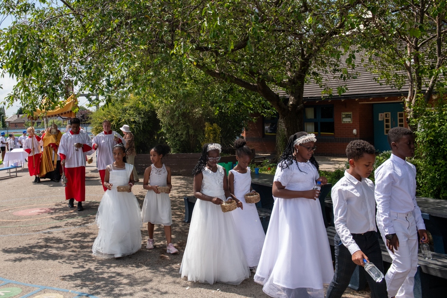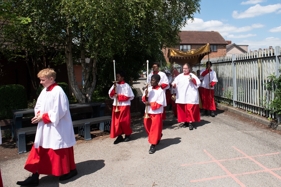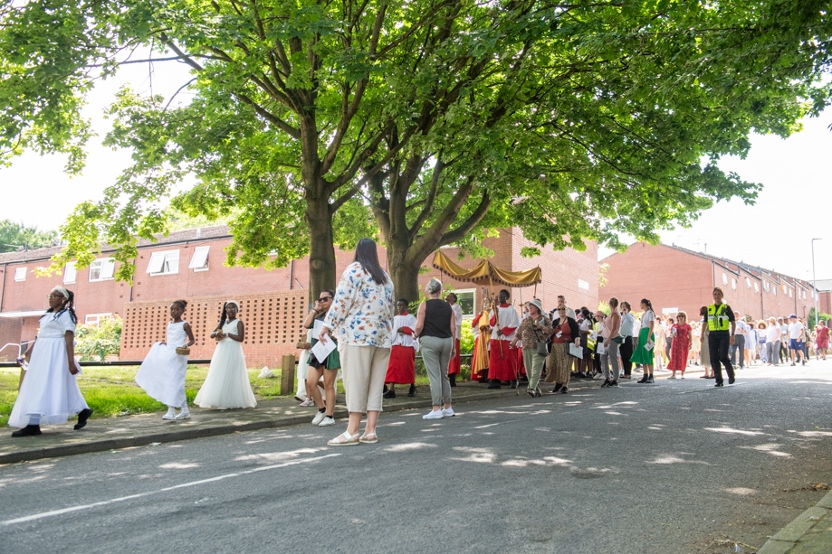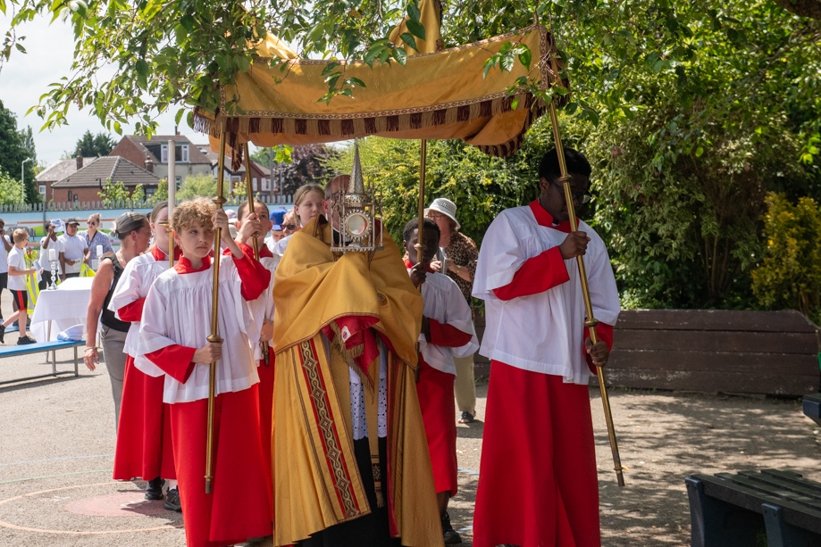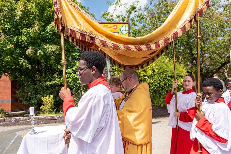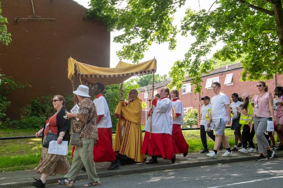On Monday 24 June 2024, the Corpus Christi Procession took place through the streets of Beeston between St Anthony’s Catholic Primary School, Beeston and St Francis Of Assisi Catholic Primary School in St Maximilian Kolbe Parish, Leeds.