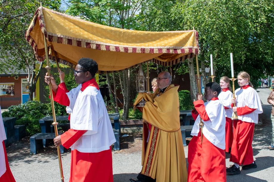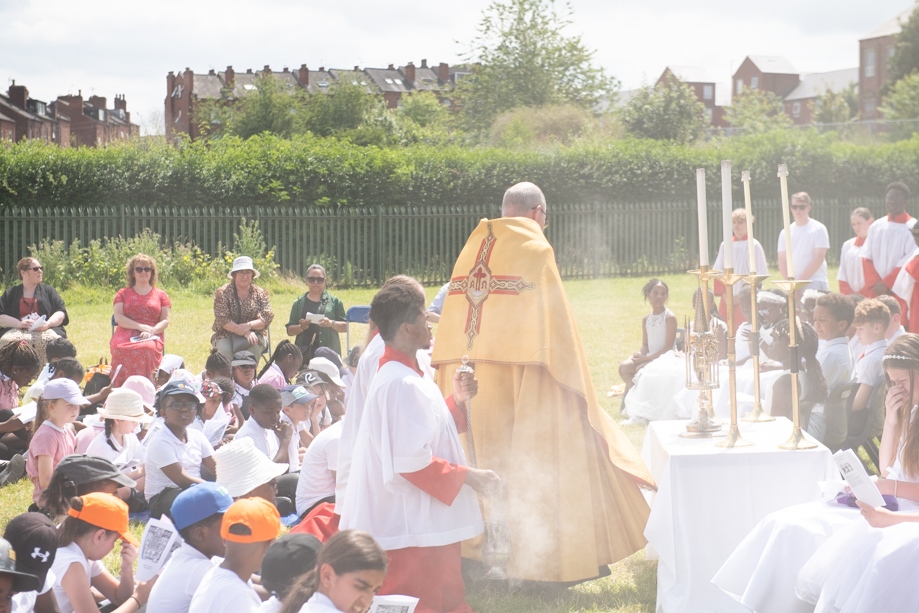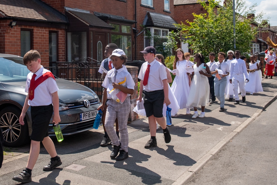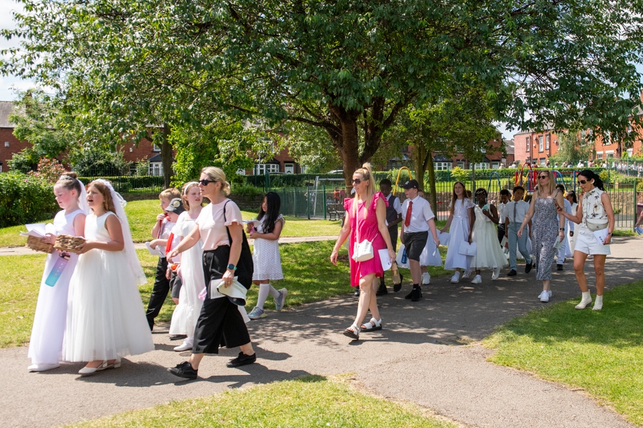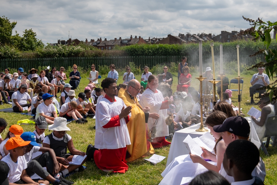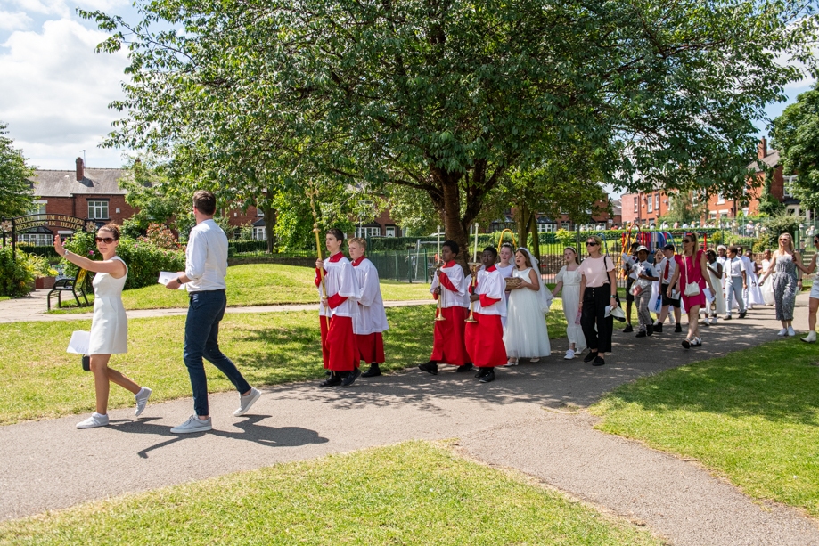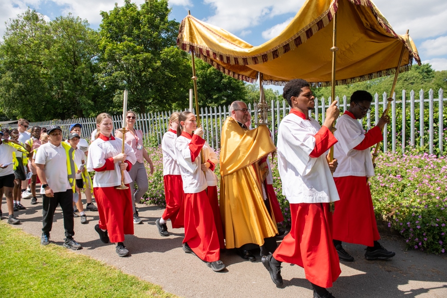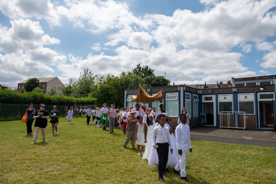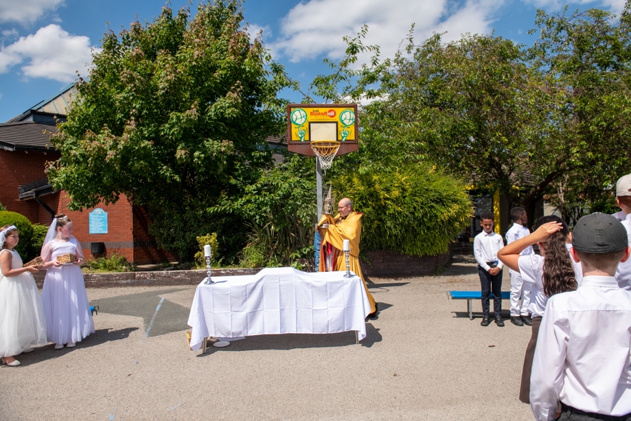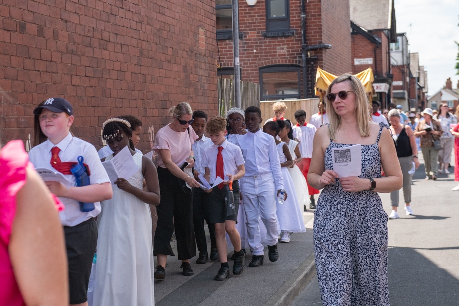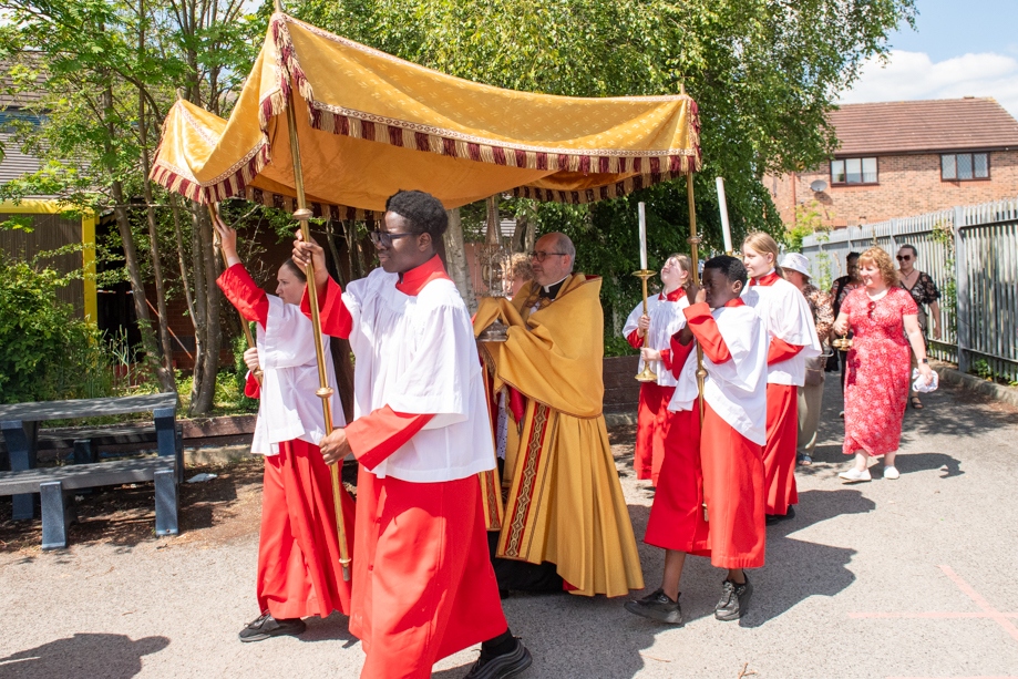 On Monday 24 June 2024, the Corpus Christi Procession took place through the streets of Beeston between St Anthony’s Catholic Primary School, Beeston and St Francis Of Assisi Catholic Primary School in St Maximilian Kolbe Parish, Leeds.