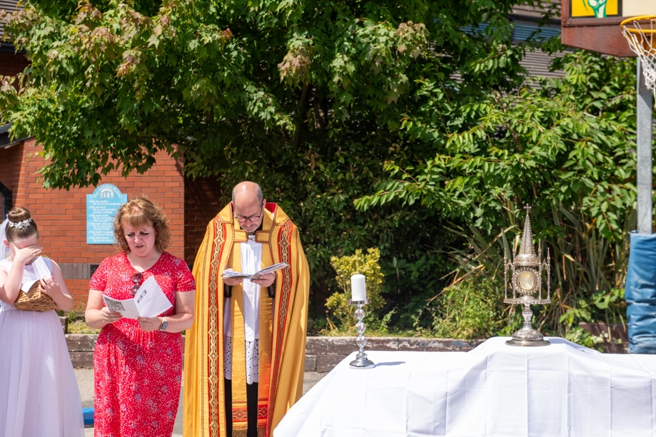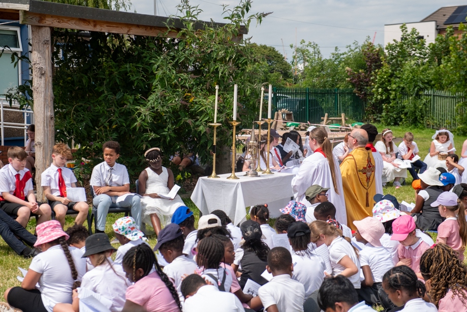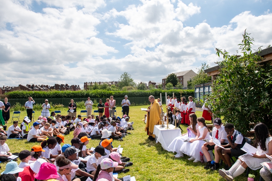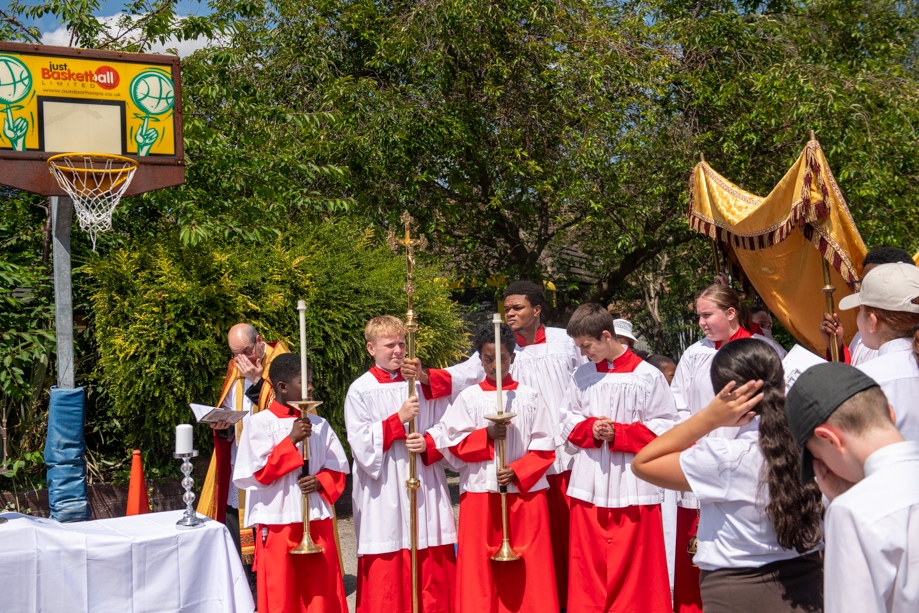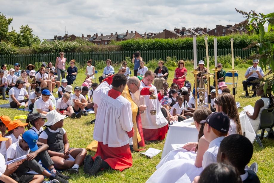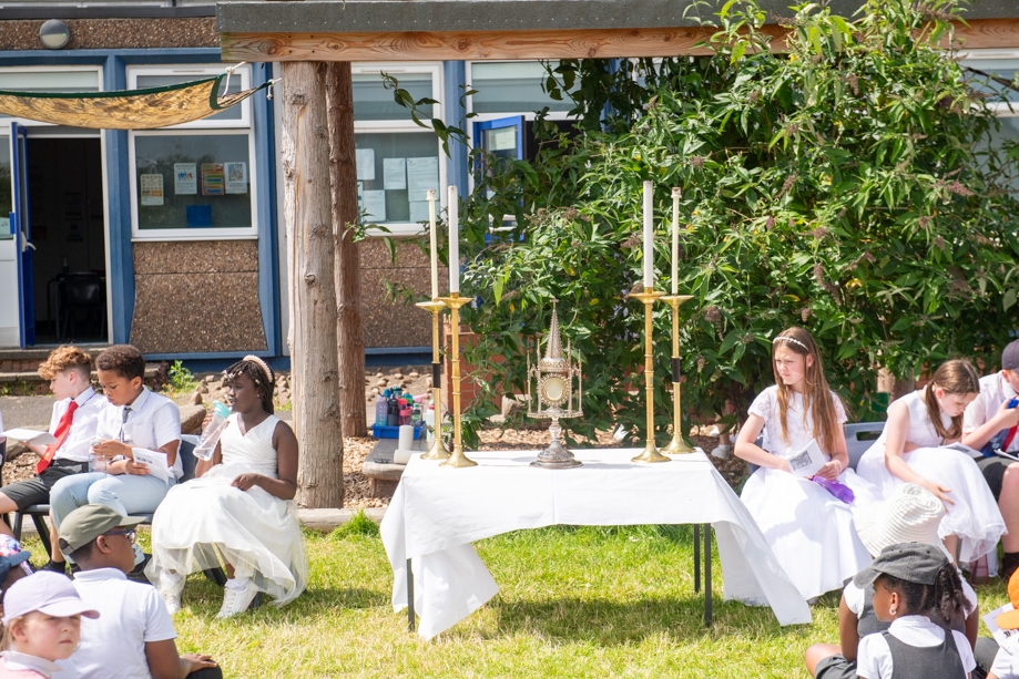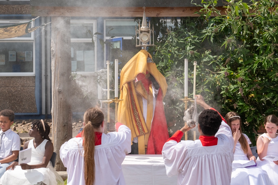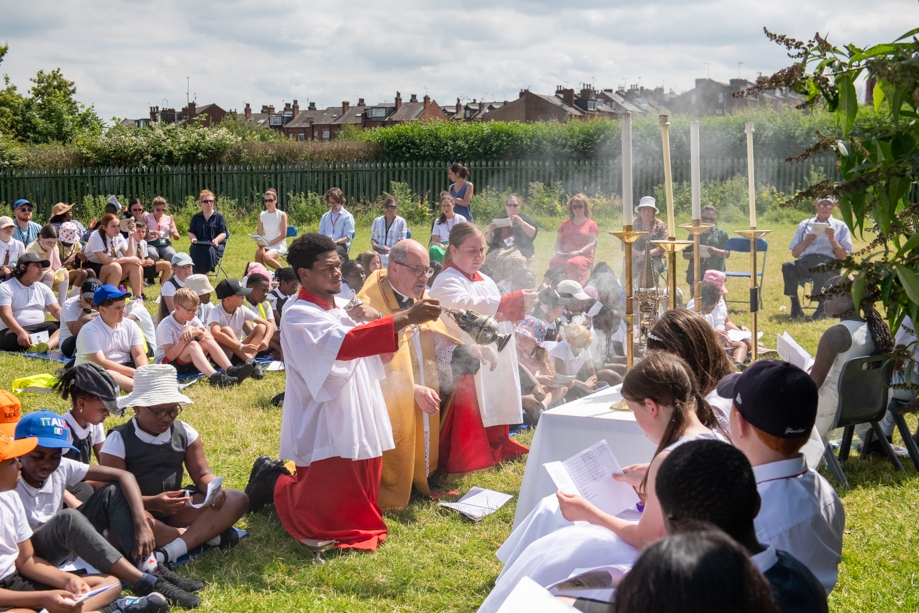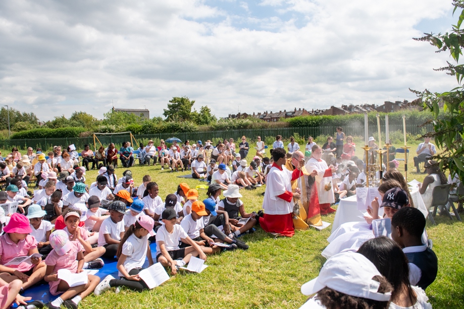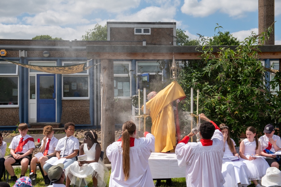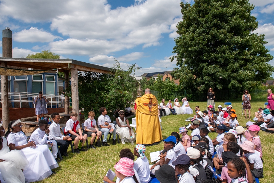 On Monday 24 June 2024, the Corpus Christi Procession took place through the streets of Beeston between St Anthony’s Catholic Primary School, Beeston and St Francis Of Assisi Catholic Primary School in St Maximilian Kolbe Parish, Leeds.