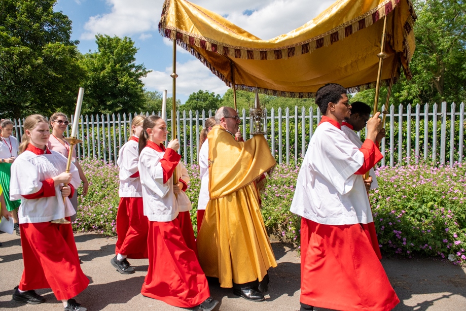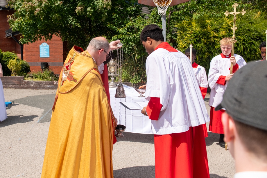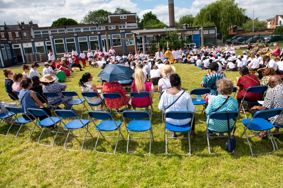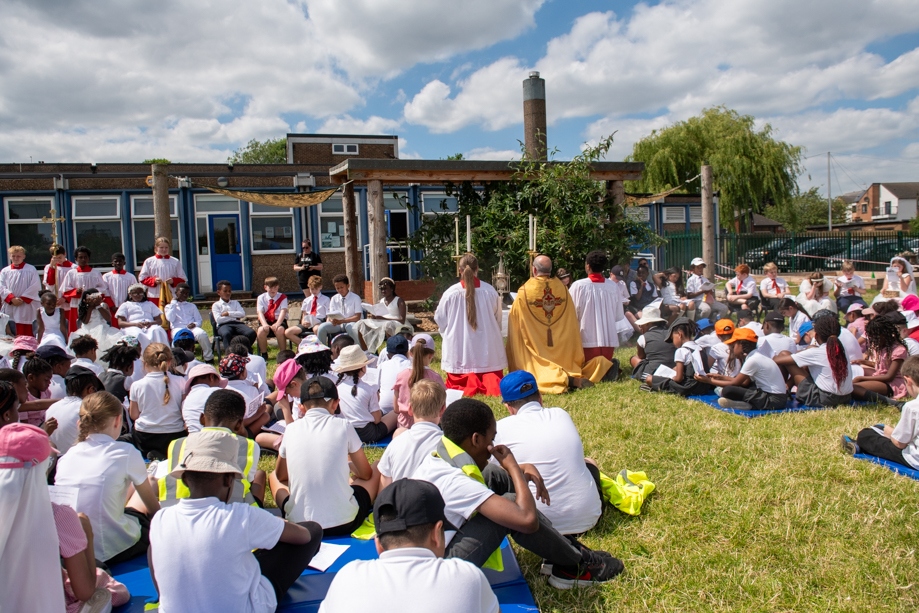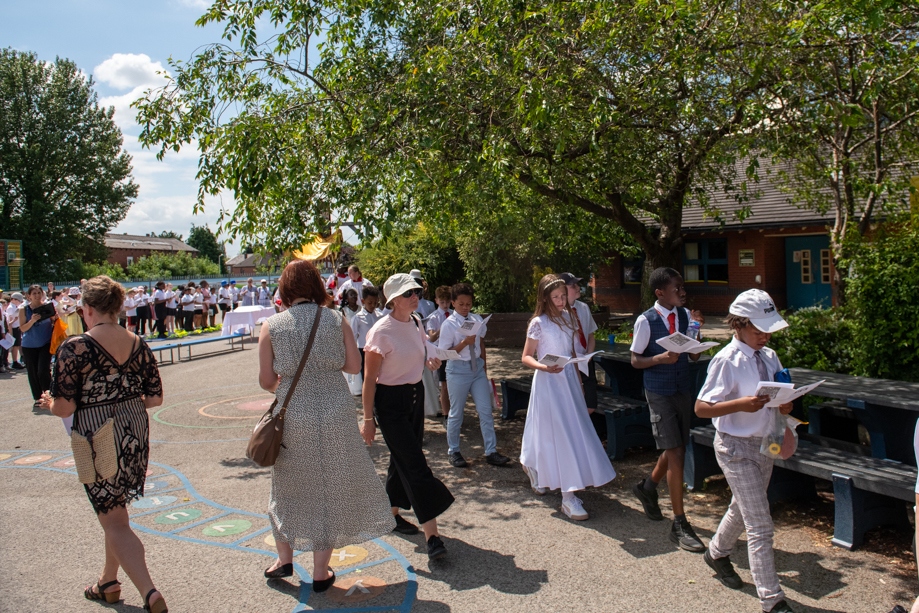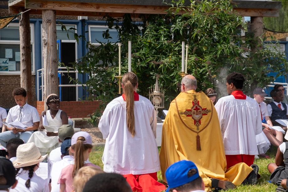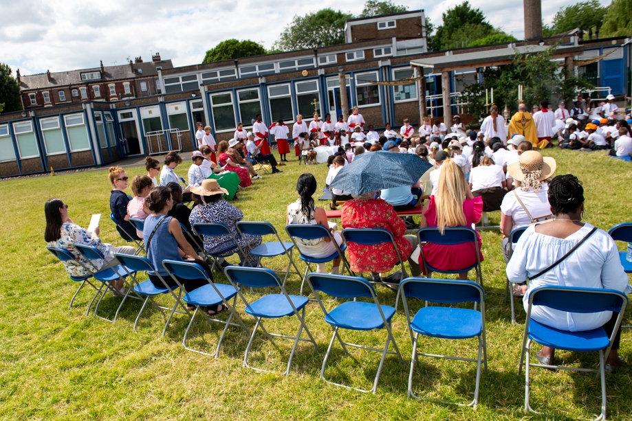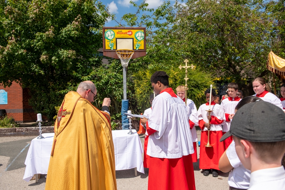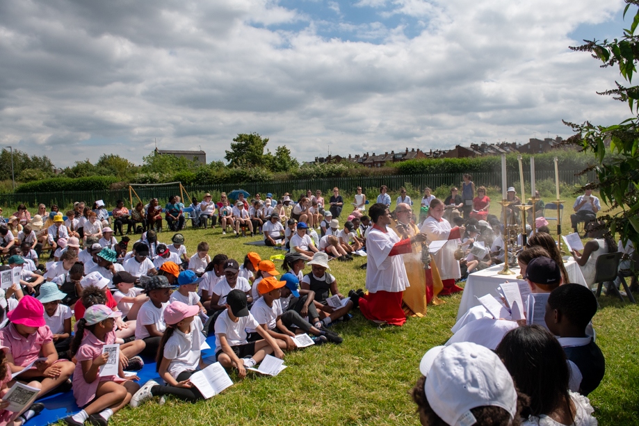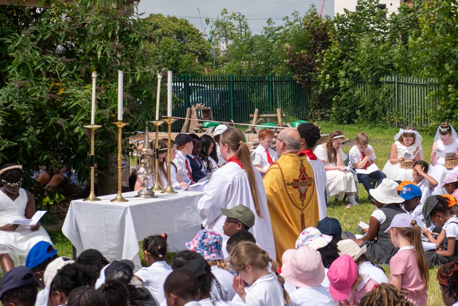 On Monday 24 June 2024, the Corpus Christi Procession took place through the streets of Beeston between St Anthony’s Catholic Primary School, Beeston and St Francis Of Assisi Catholic Primary School in St Maximilian Kolbe Parish, Leeds.
