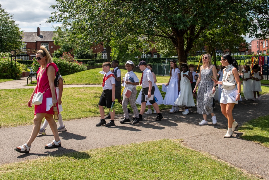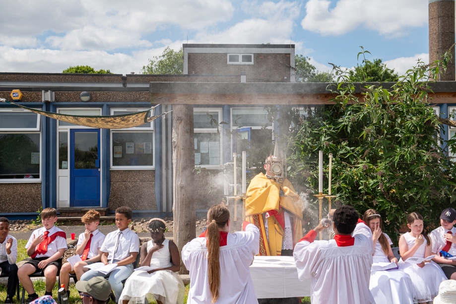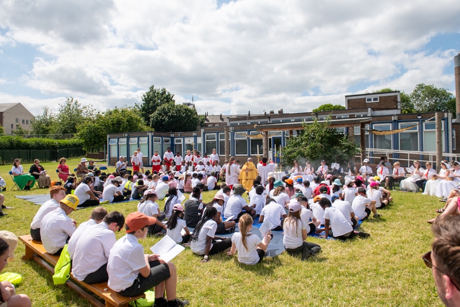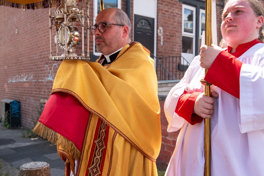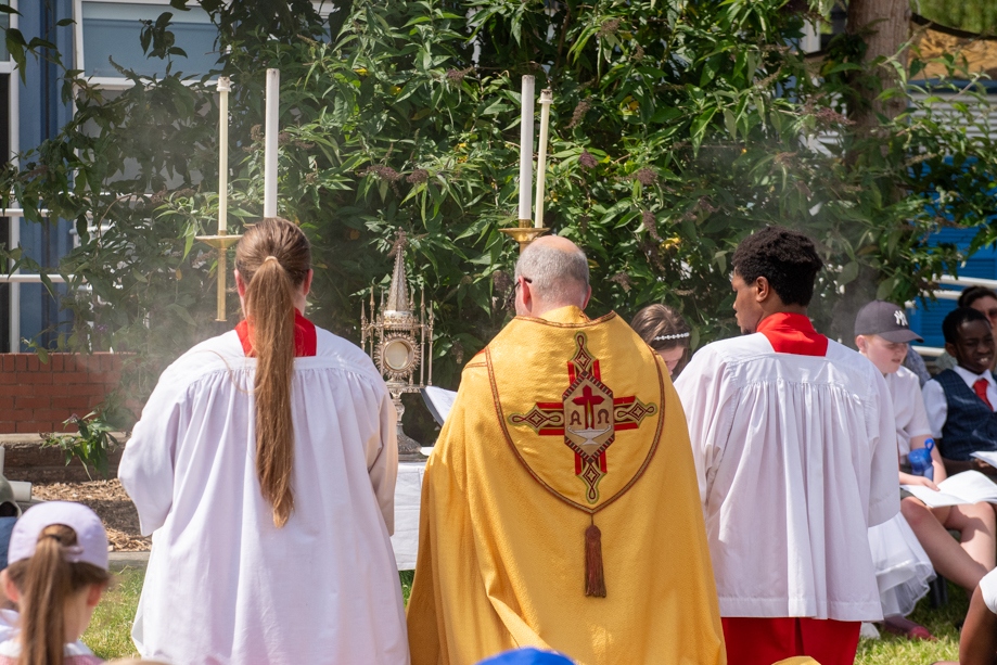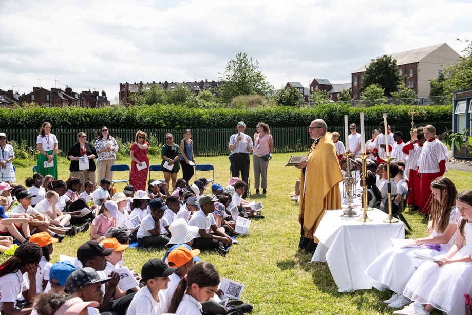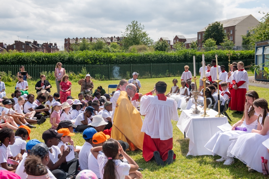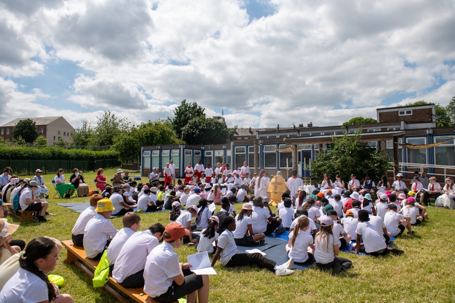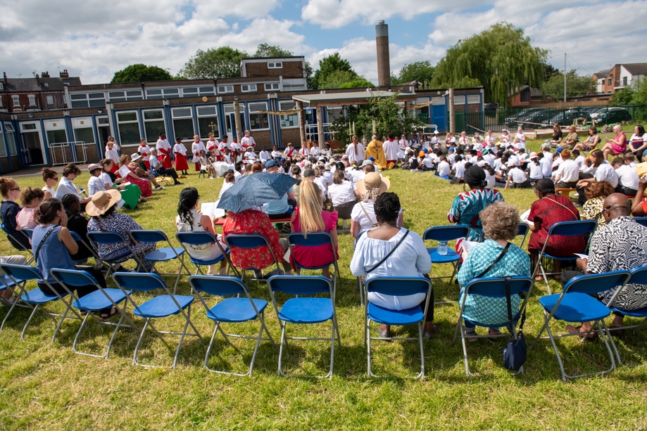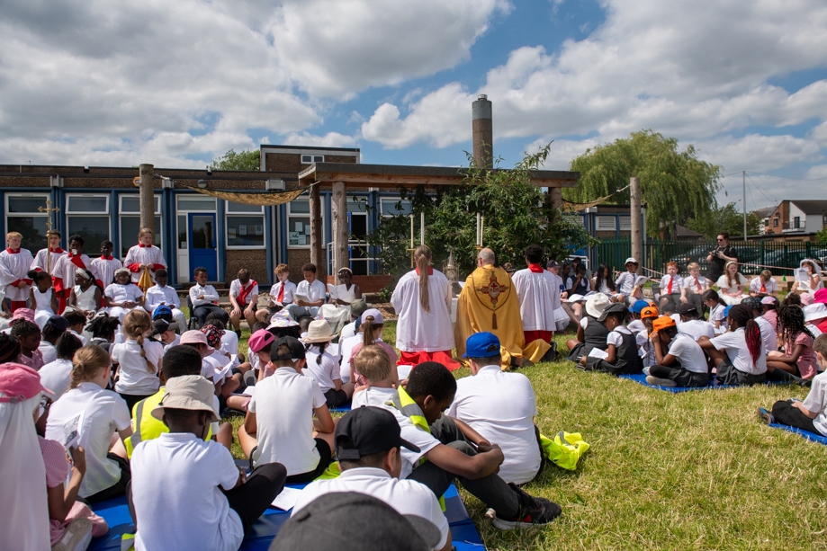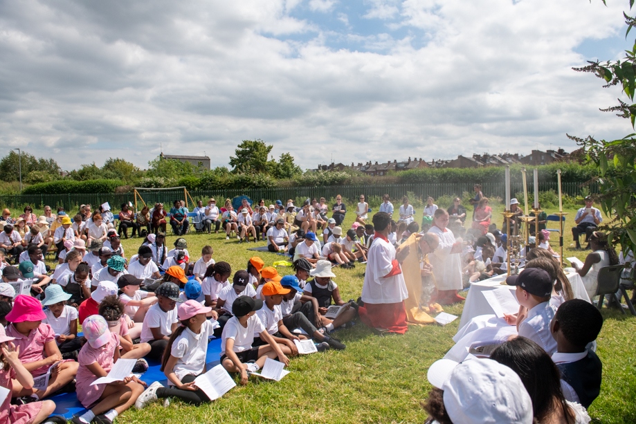 On Monday 24 June 2024, the Corpus Christi Procession took place through the streets of Beeston between St Anthony’s Catholic Primary School, Beeston and St Francis Of Assisi Catholic Primary School in St Maximilian Kolbe Parish, Leeds.