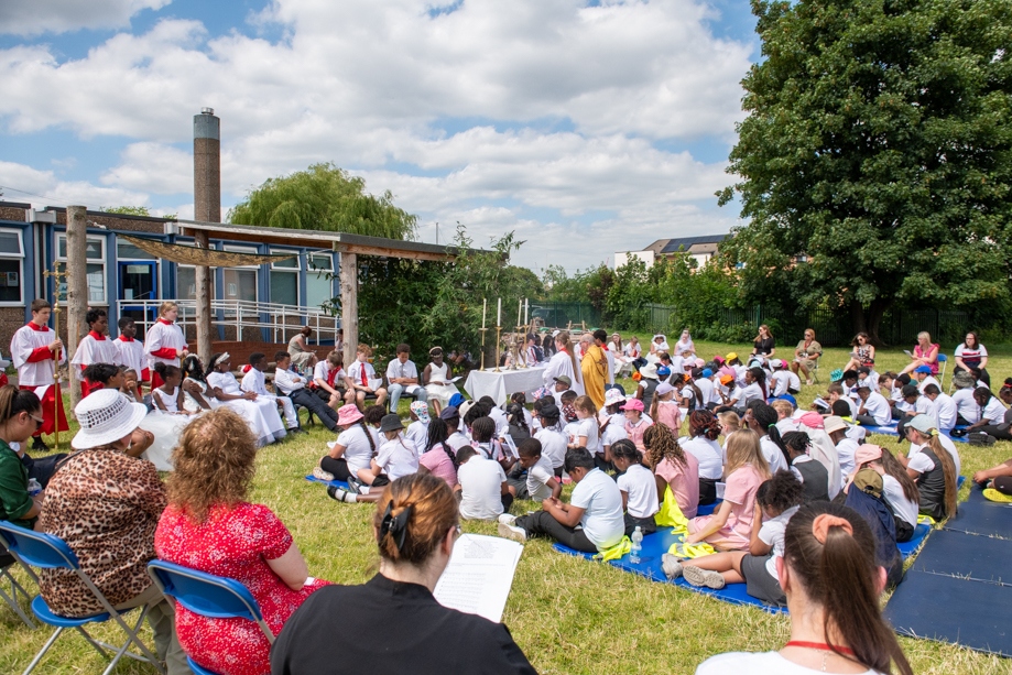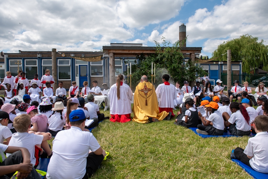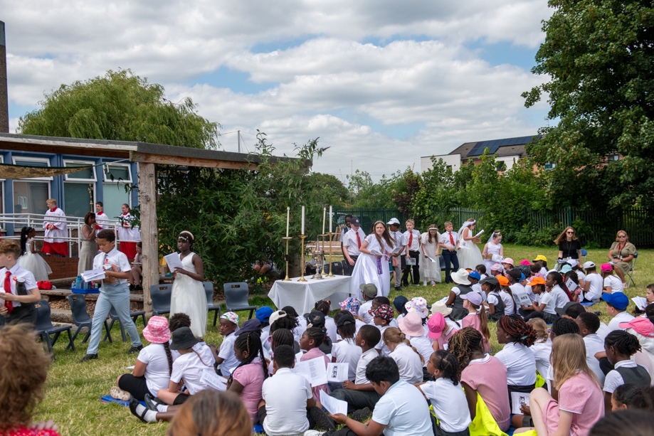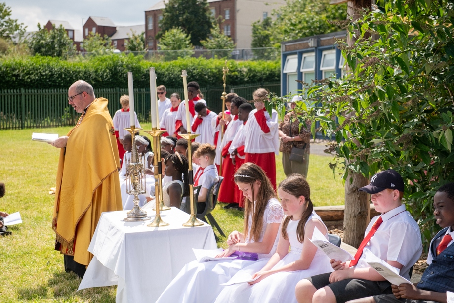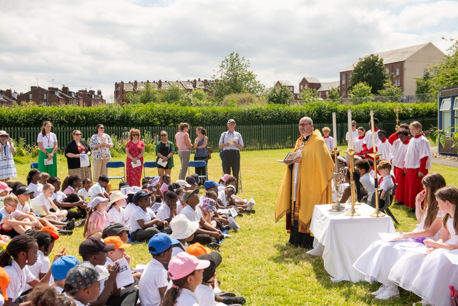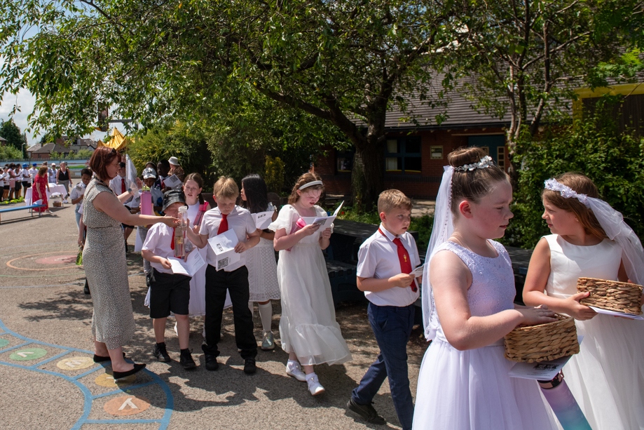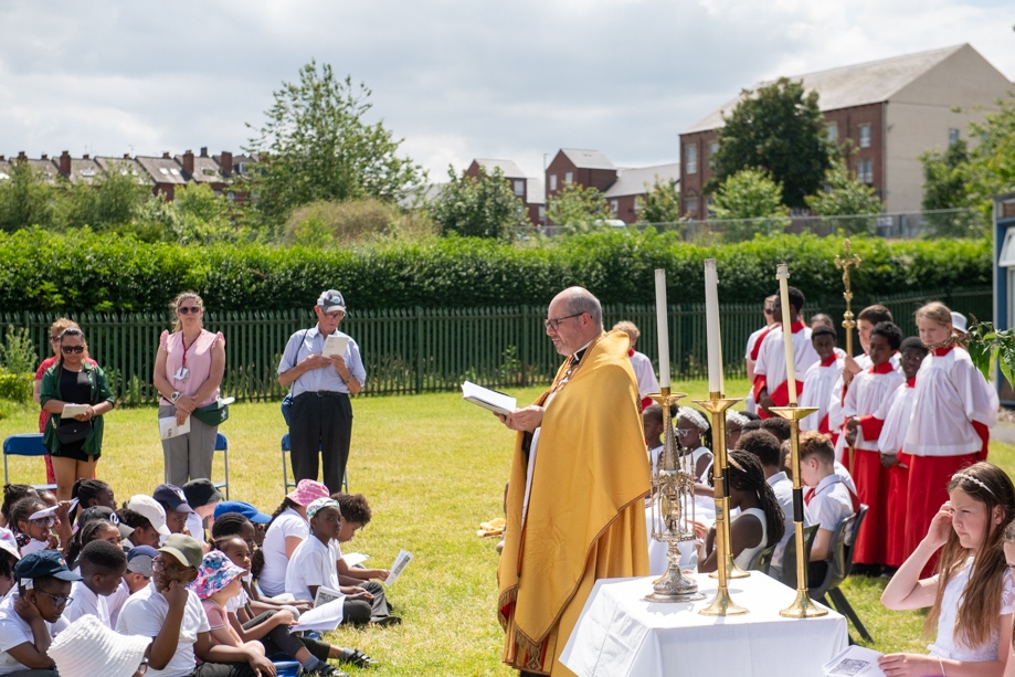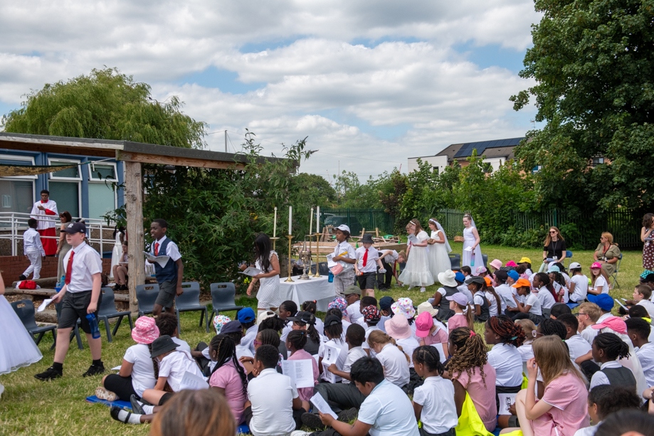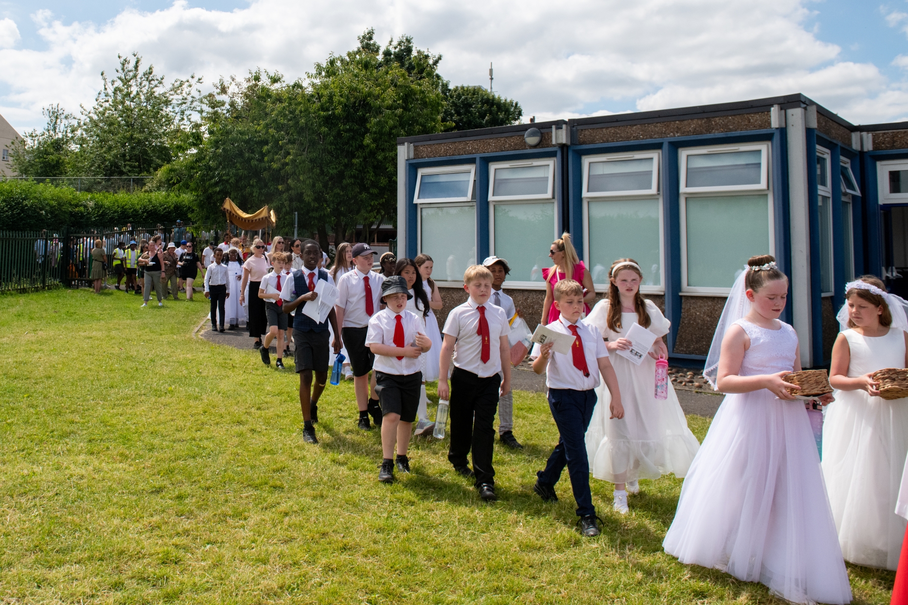 On Monday 24 June 2024, the Corpus Christi Procession took place through the streets of Beeston between St Anthony’s Catholic Primary School, Beeston and St Francis Of Assisi Catholic Primary School in St Maximilian Kolbe Parish, Leeds.