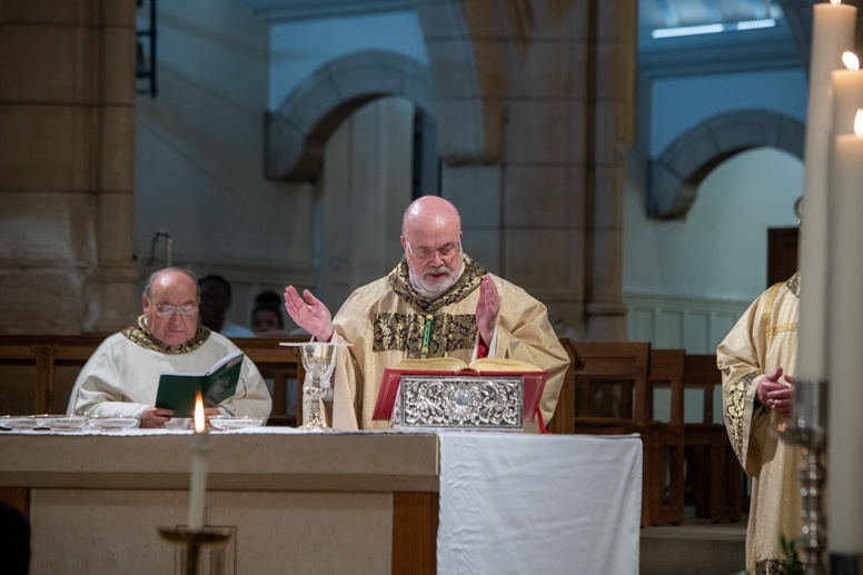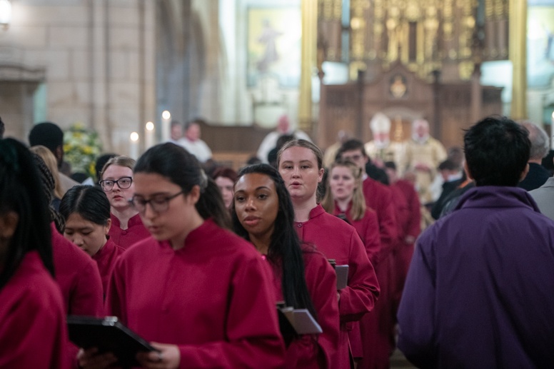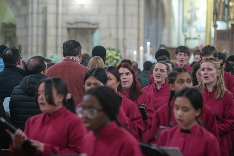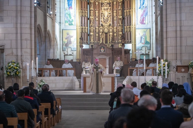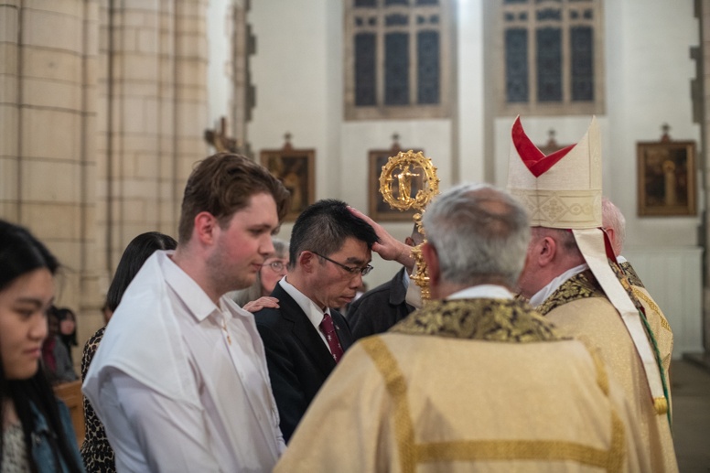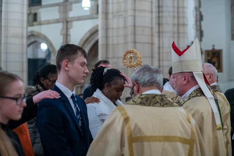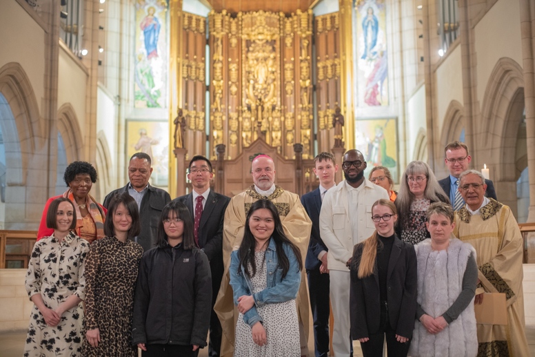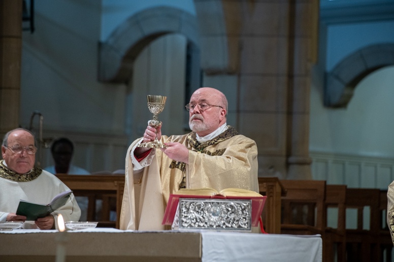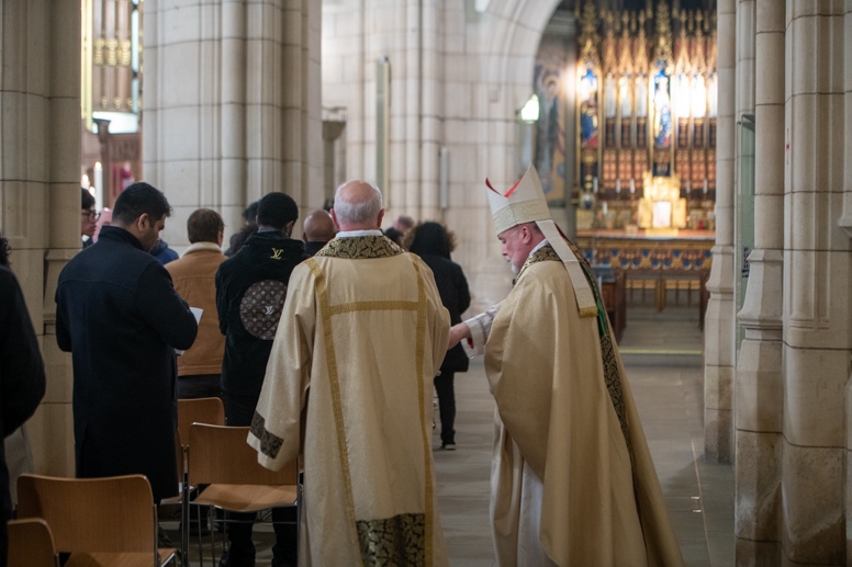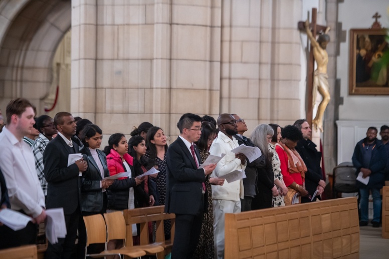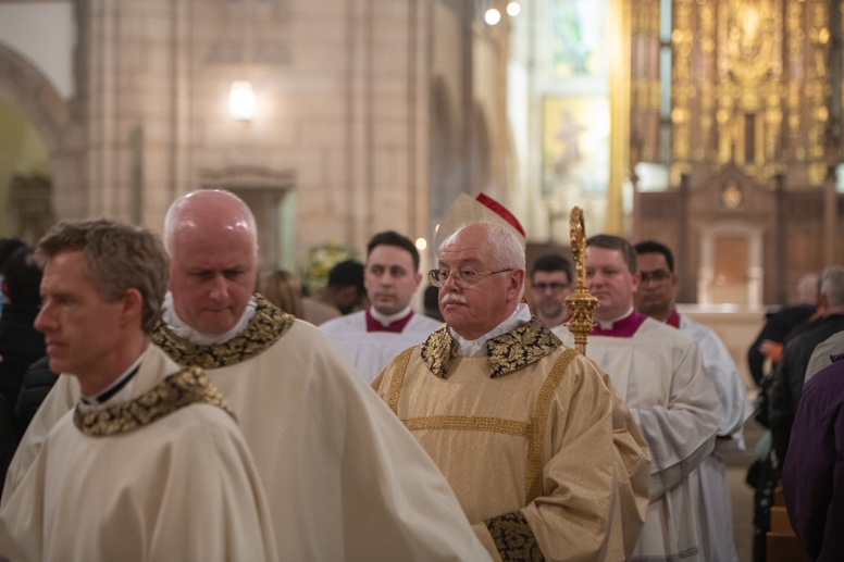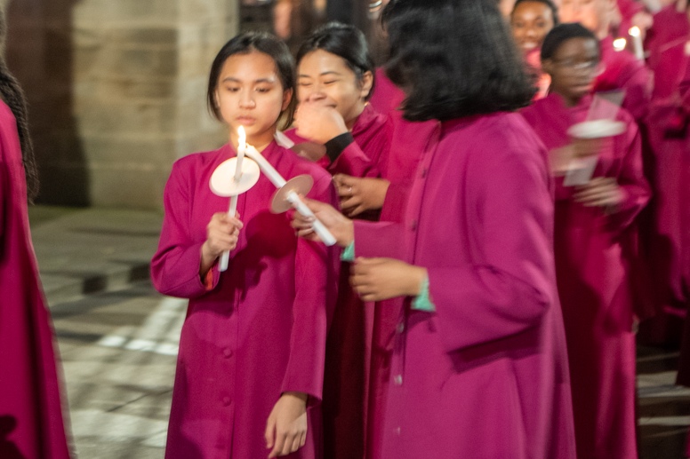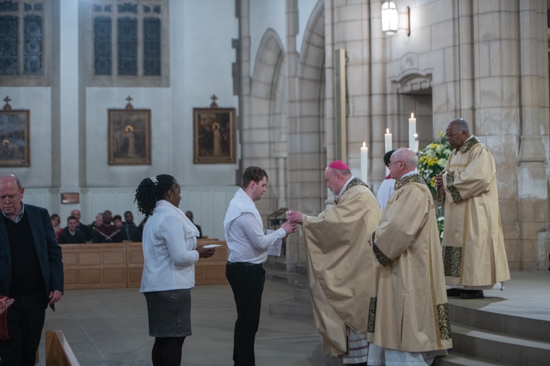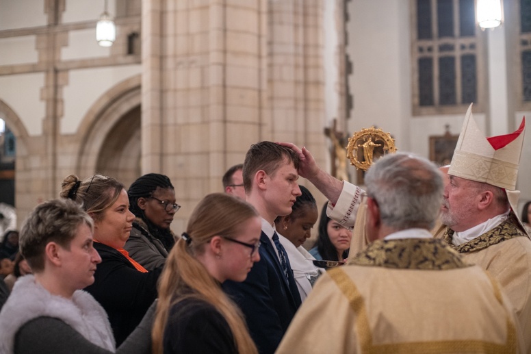 Easter Vigil began outside the Leeds Cathedral where Bishop Marcus blesses the Easter Light and ignites the paschal candle that will then light candles for the rest of the congregation.