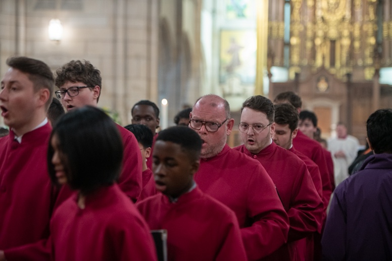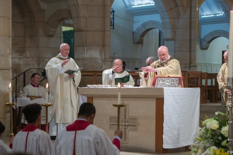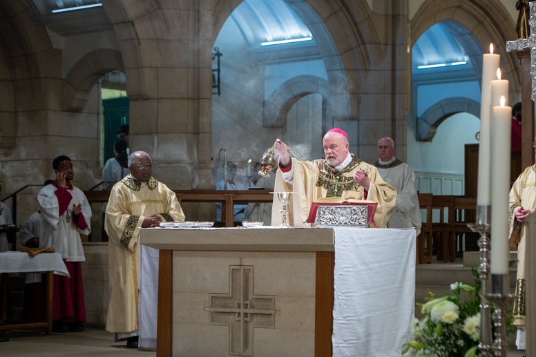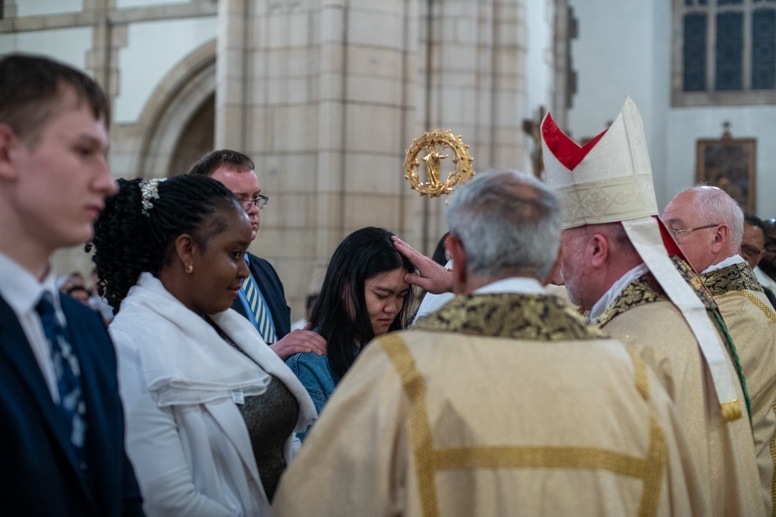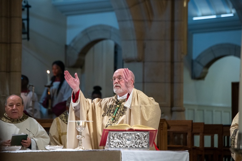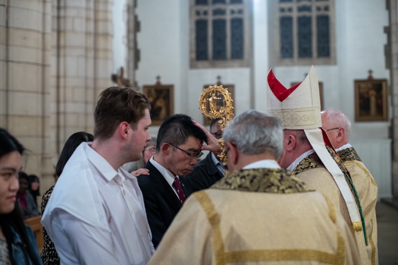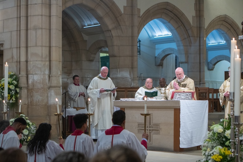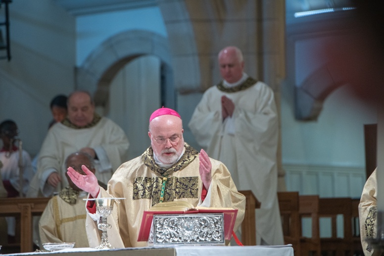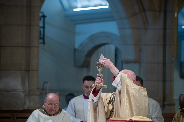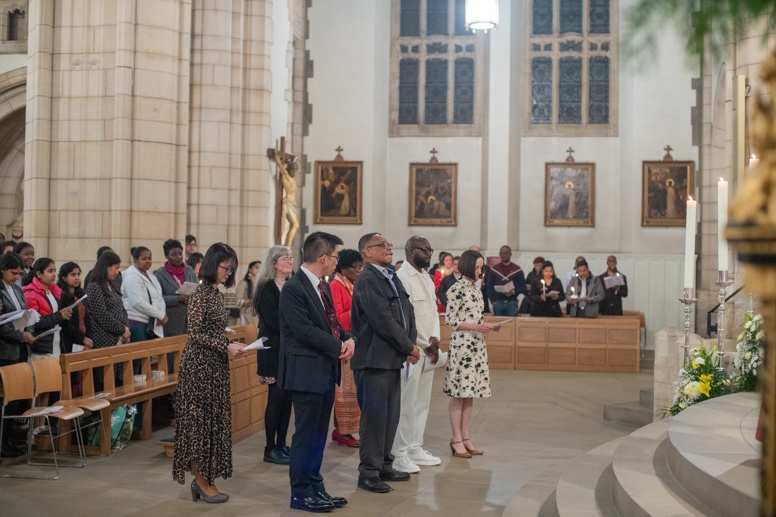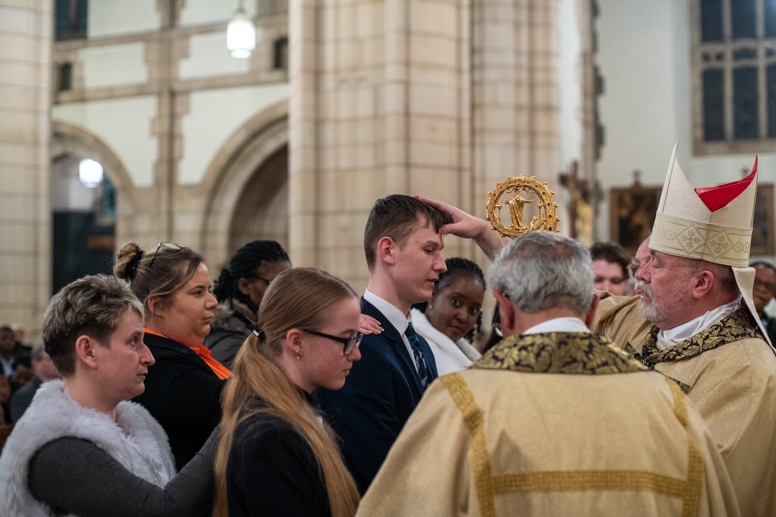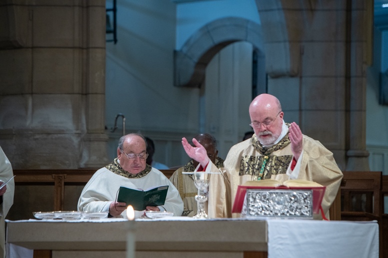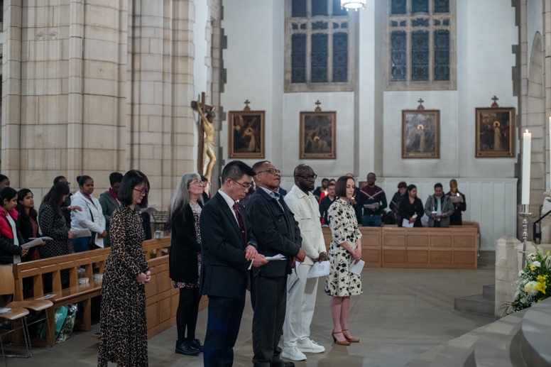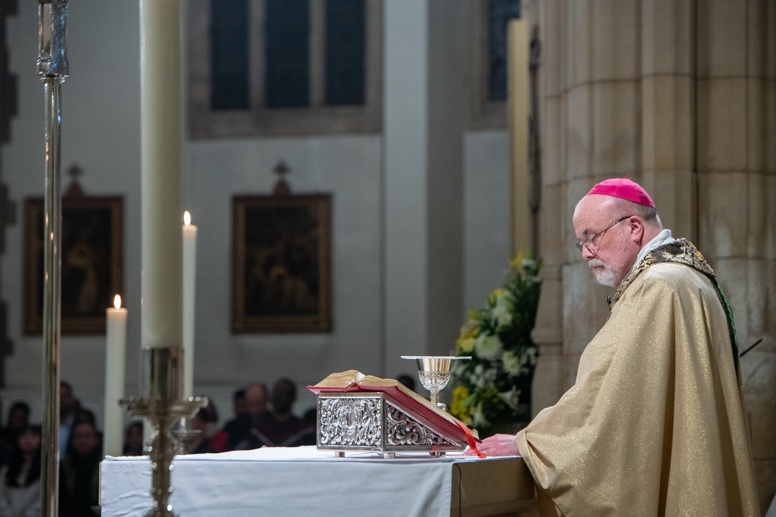 Easter Vigil began outside the Leeds Cathedral where Bishop Marcus blesses the Easter Light and ignites the paschal candle that will then light candles for the rest of the congregation.