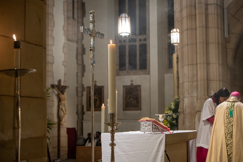 We procession into St Anne Cathedral where Deacon Joseph Cortis sang the Exsultet – the Hymm of Easter Praise.