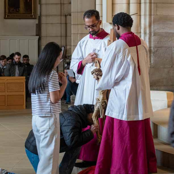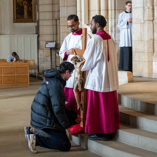 Good Friday marks the day when no Masses take place. To honor the suffering and death of Jesus on the Cross, we come together at Leeds Cathedral for a Communion service and the Veneration of the Holy Cross.