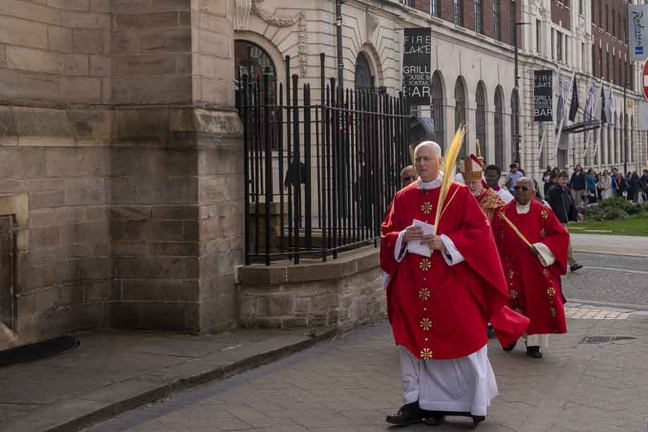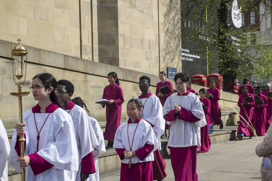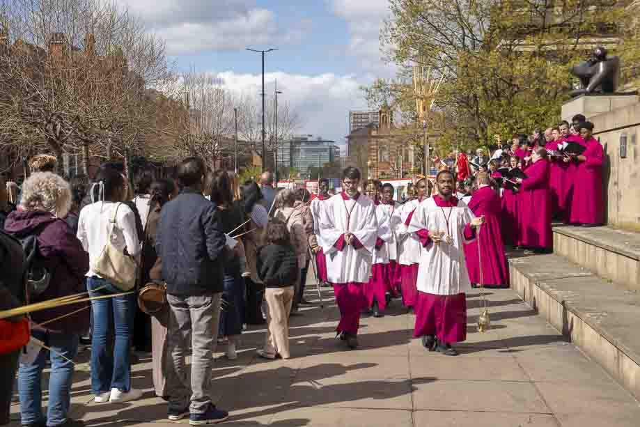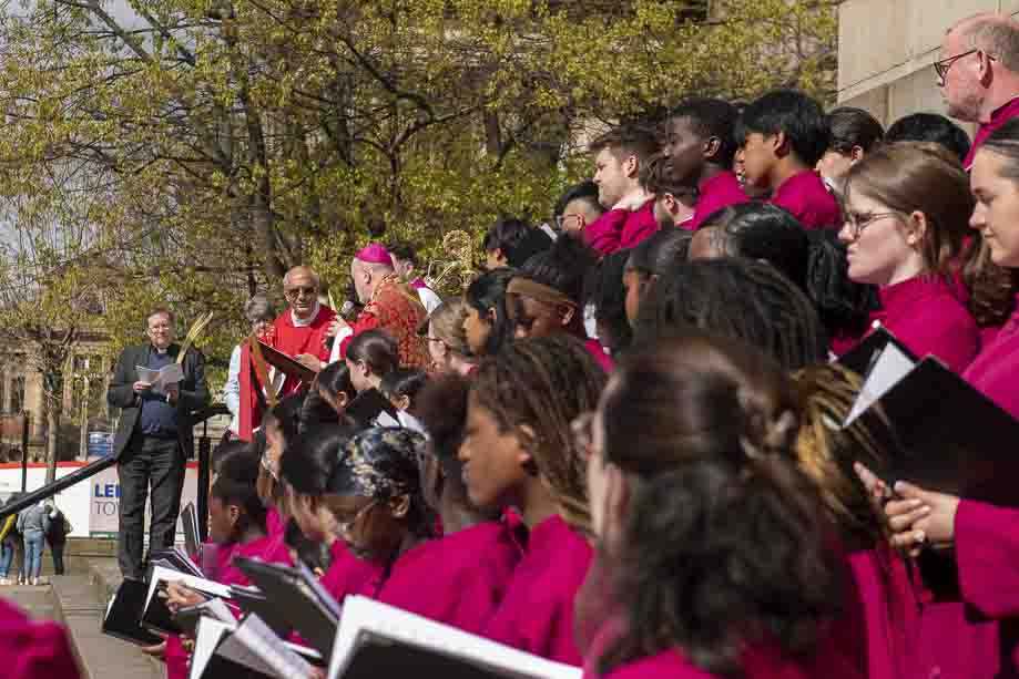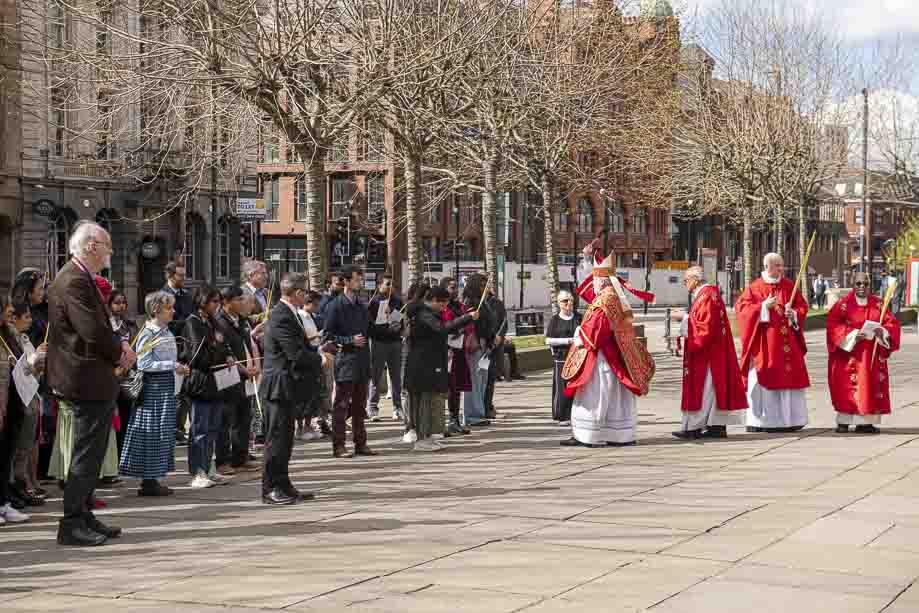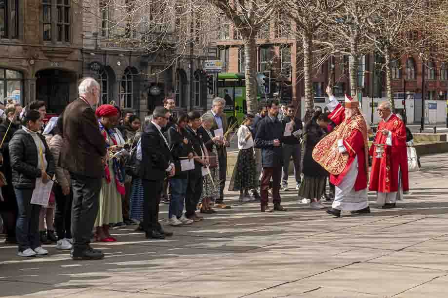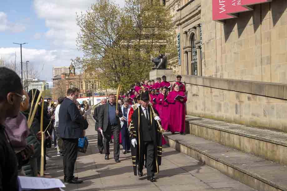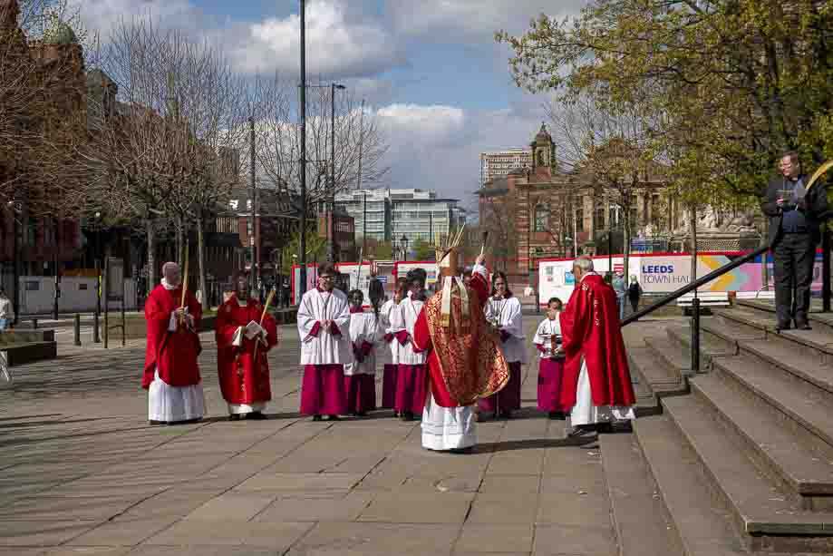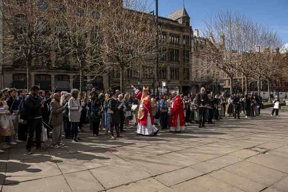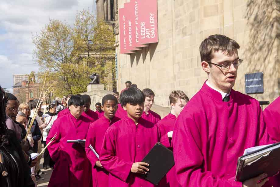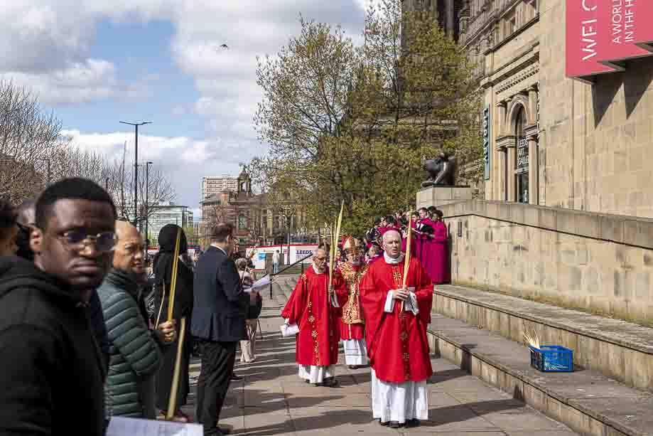 We began our Mass with the Blessing of Palms outside the Leeds Art Gallery, Victoria Gardens. The congregation processes into the Cathedral Church of St Anne.