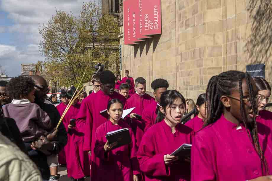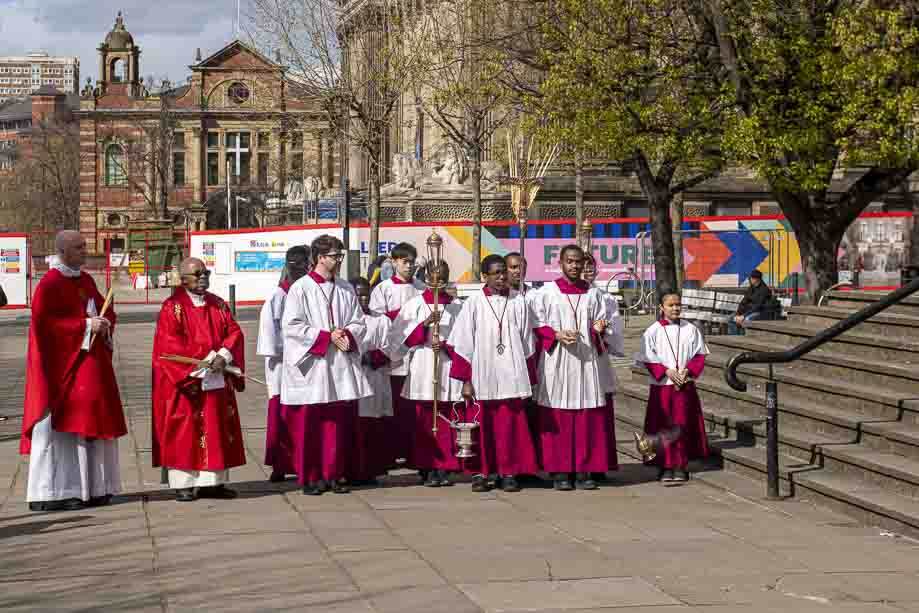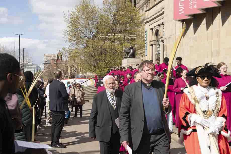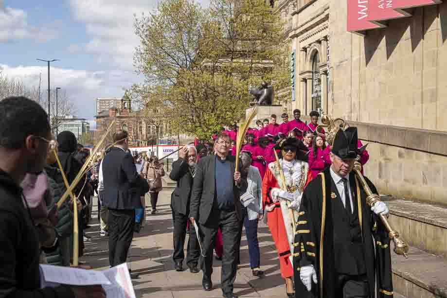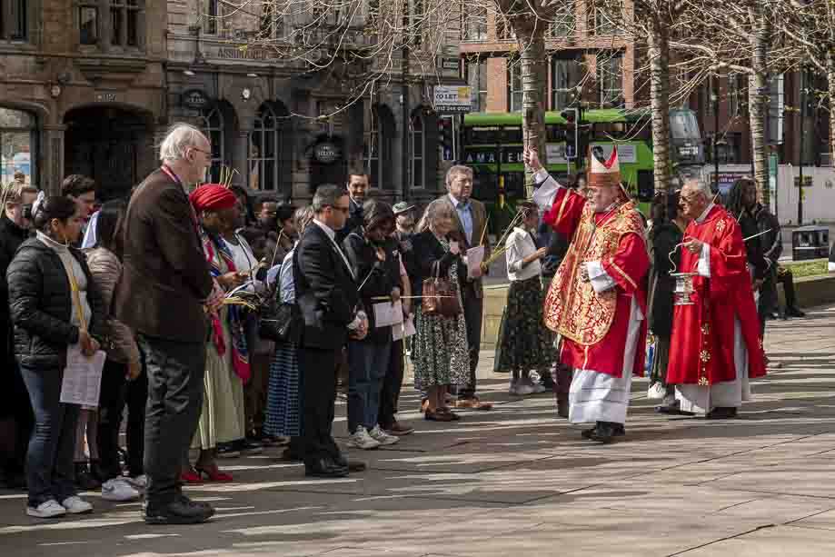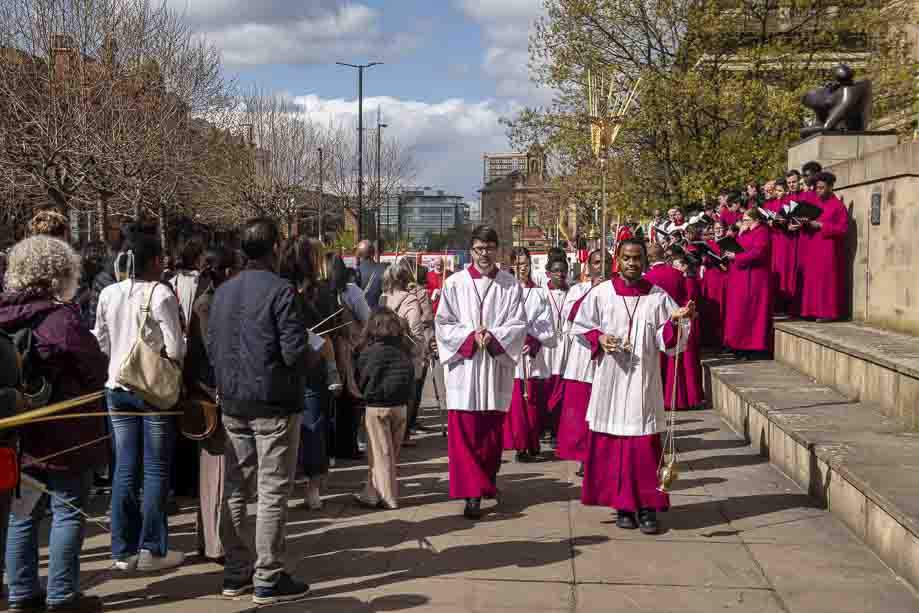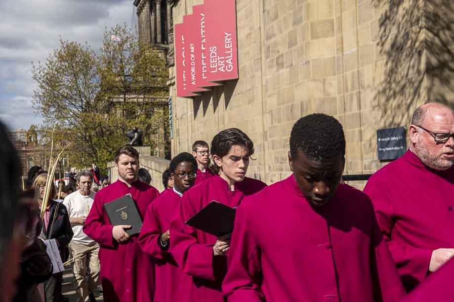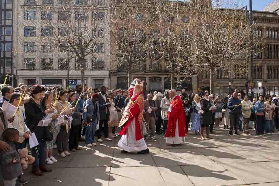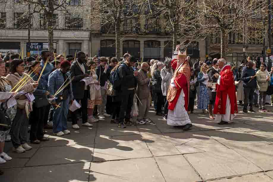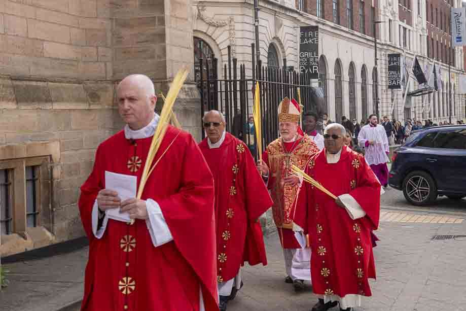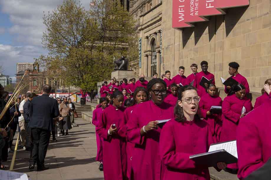 We began our Mass with the Blessing of Palms outside the Leeds Art Gallery, Victoria Gardens. The congregation processes into the Cathedral Church of St Anne.