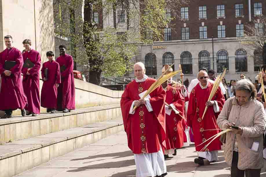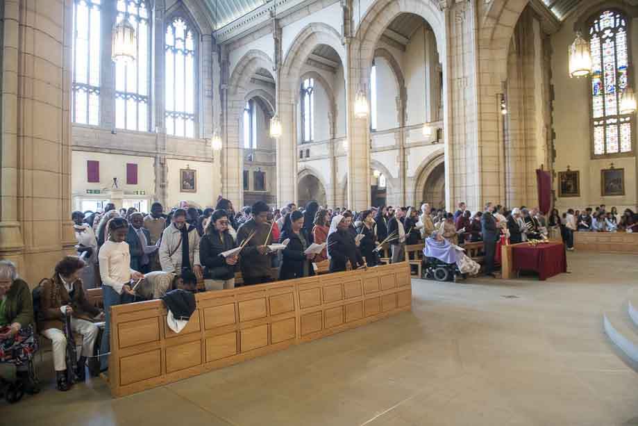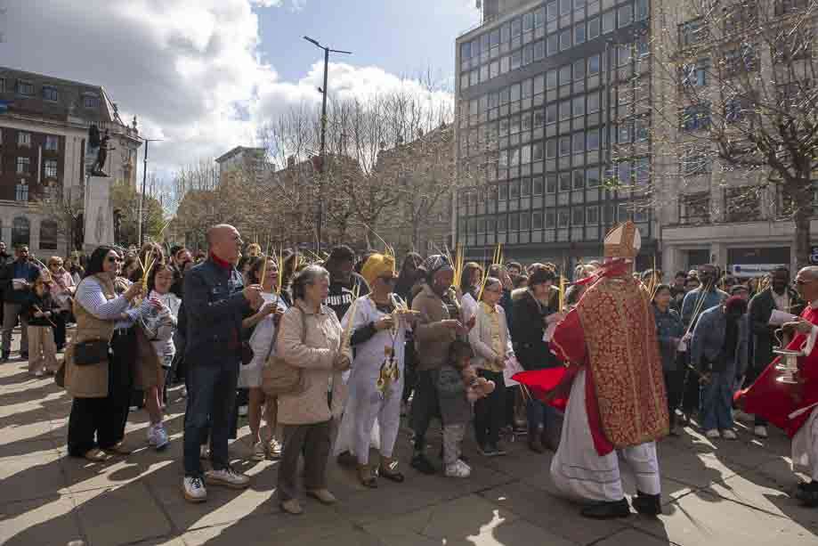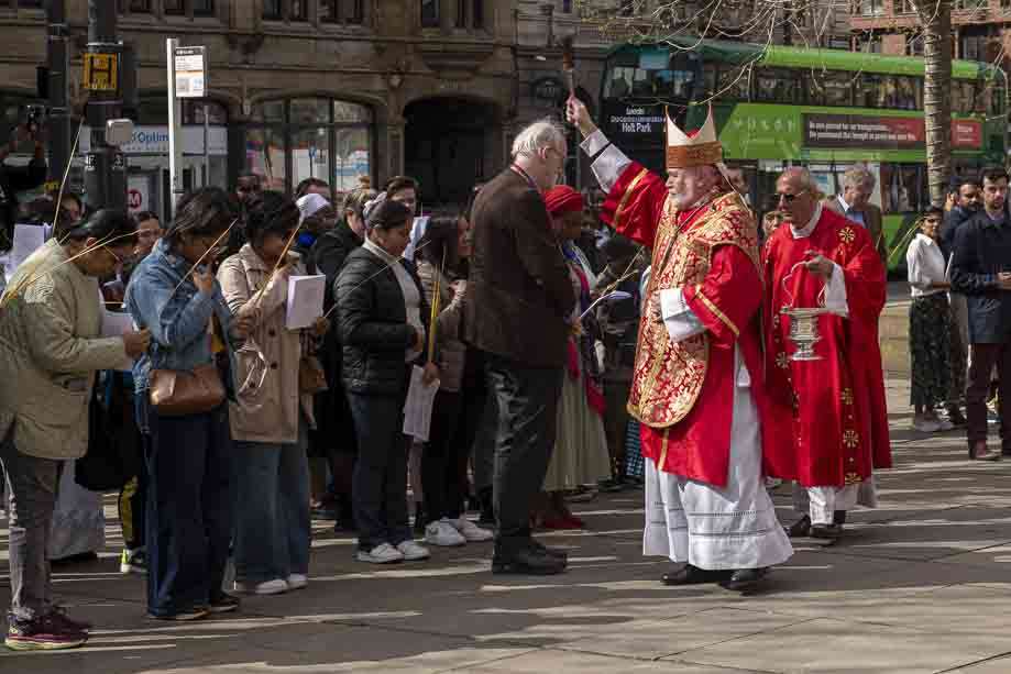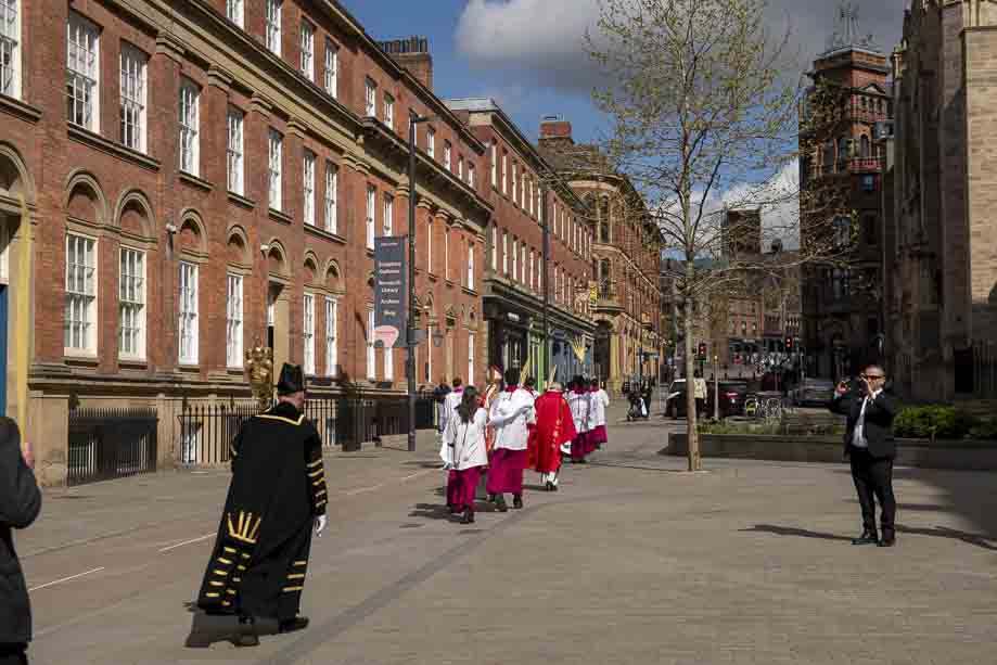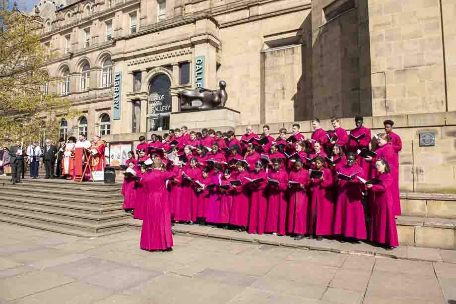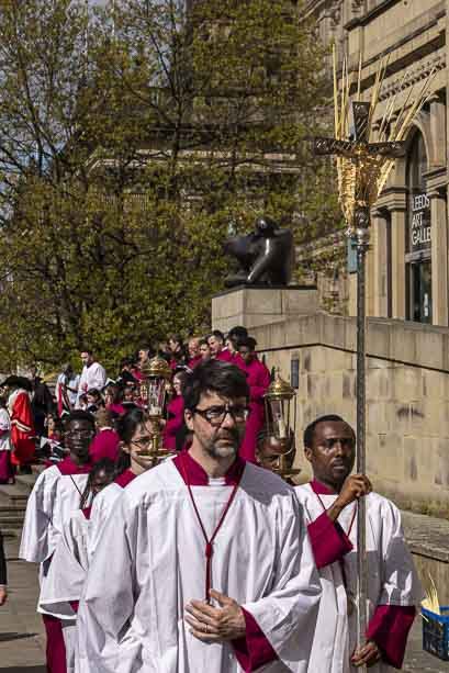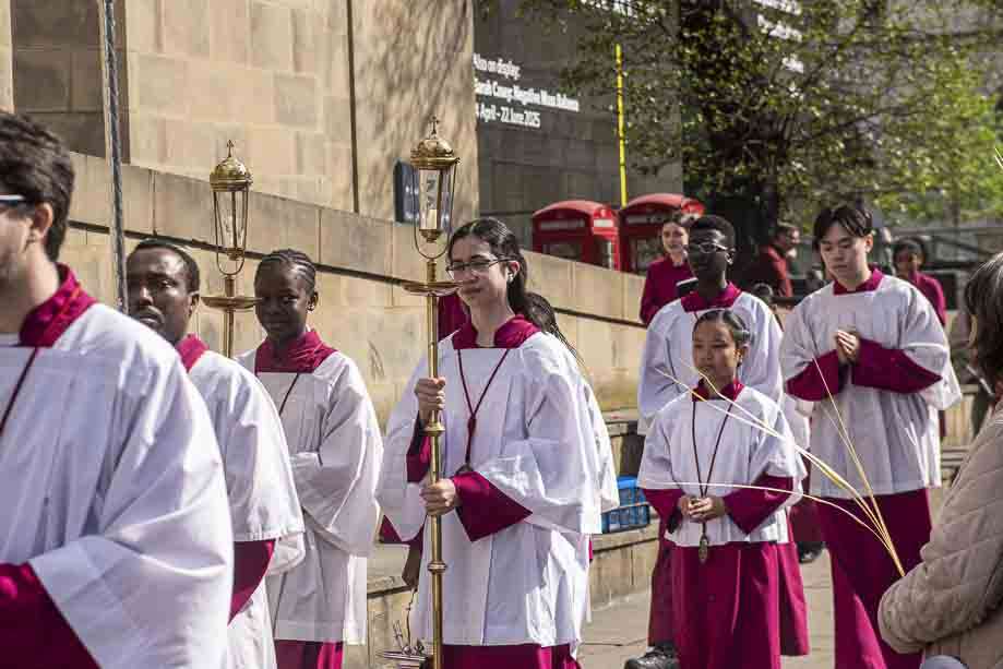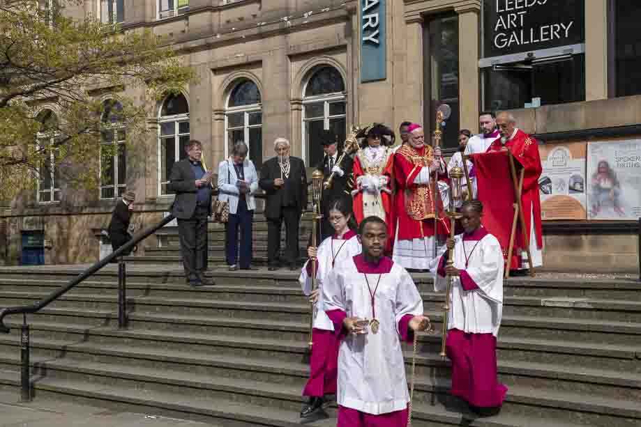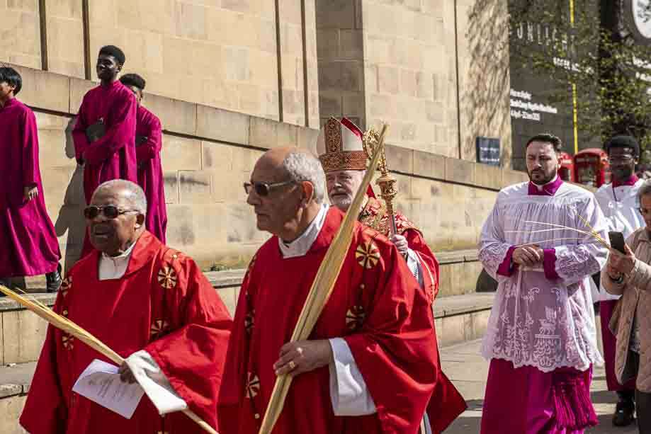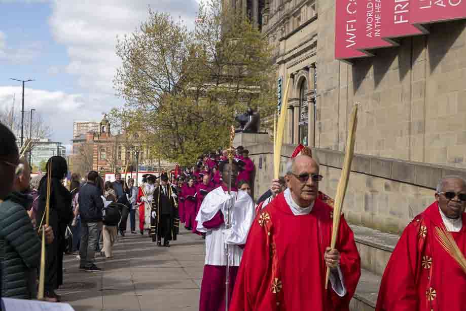 We began our Mass with the Blessing of Palms outside the Leeds Art Gallery, Victoria Gardens. The congregation processes into the Cathedral Church of St Anne.