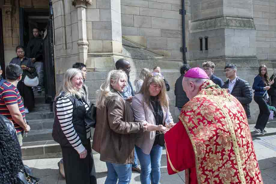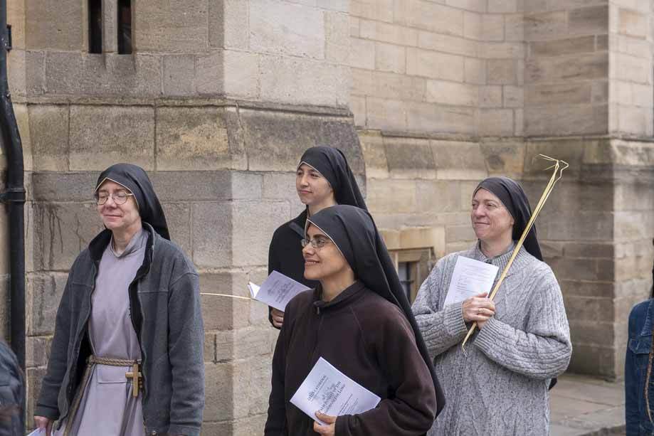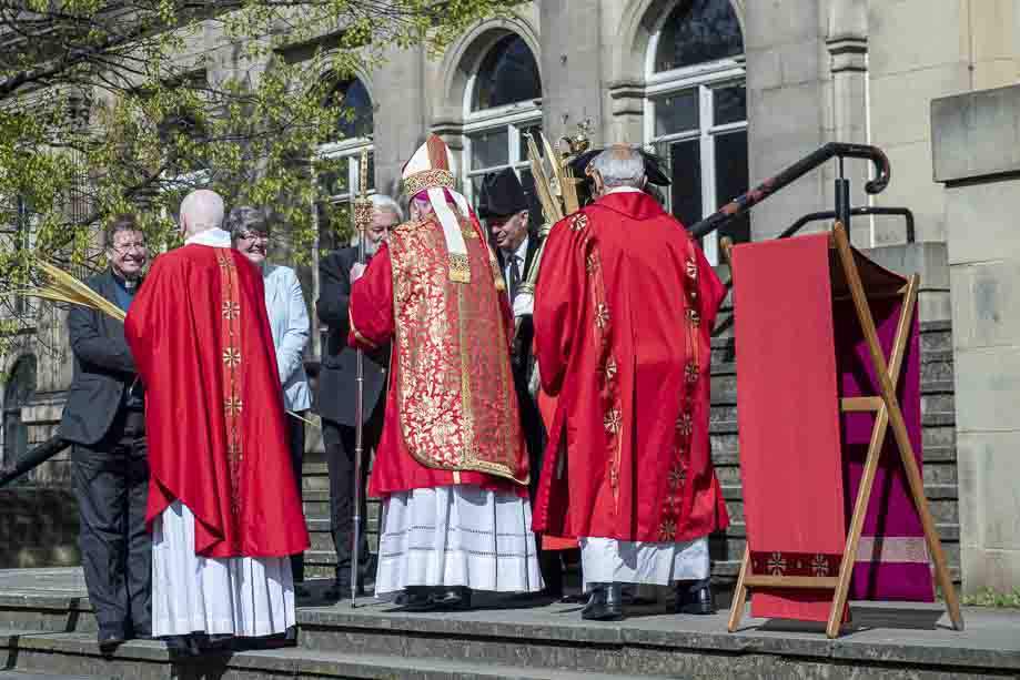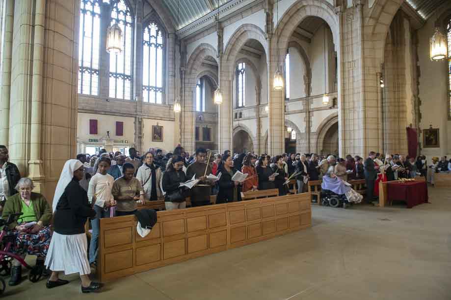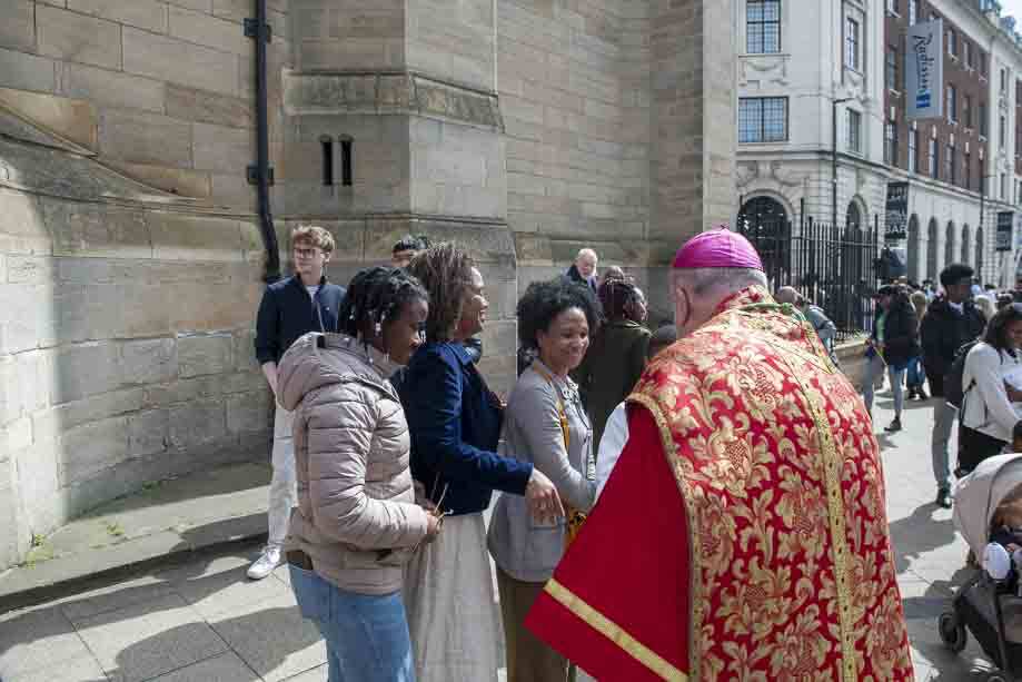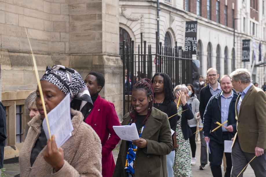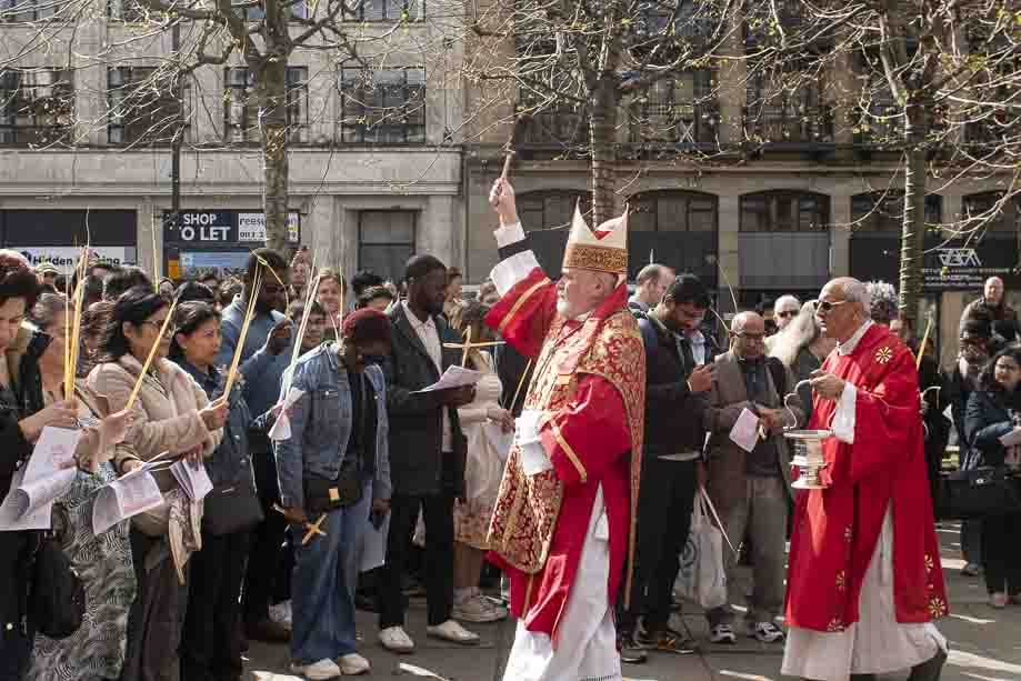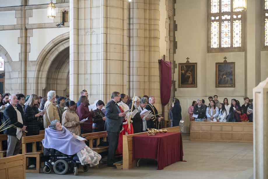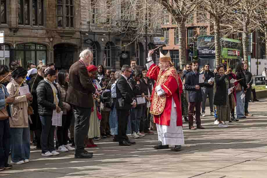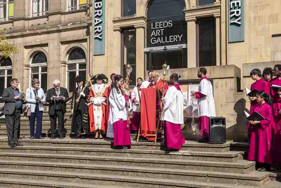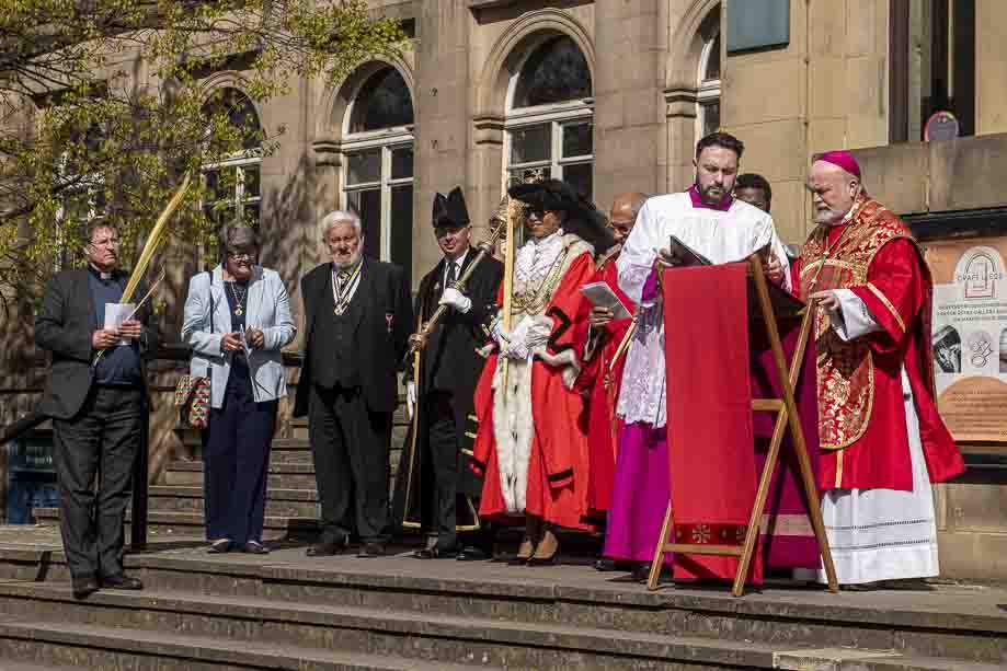 We began our Mass with the Blessing of Palms outside the Leeds Art Gallery, Victoria Gardens. The congregation processes into the Cathedral Church of St Anne.