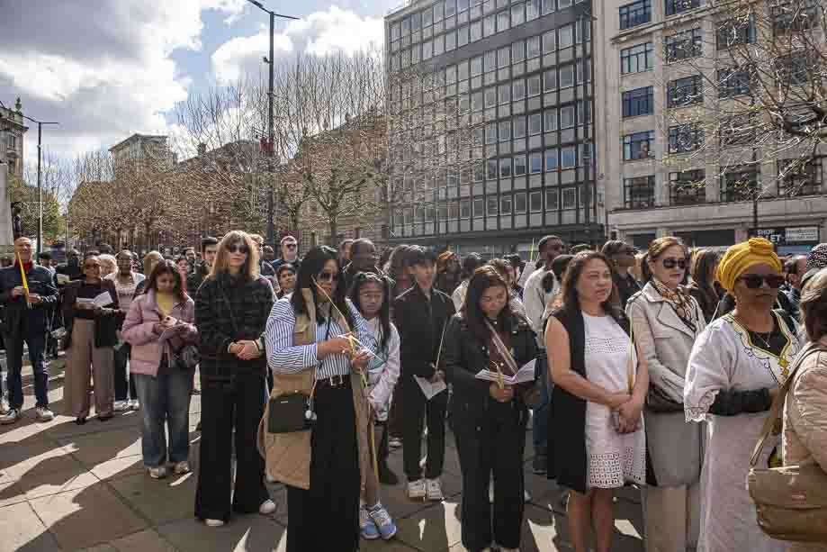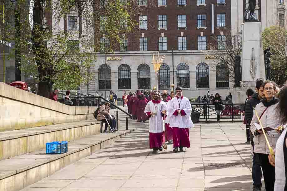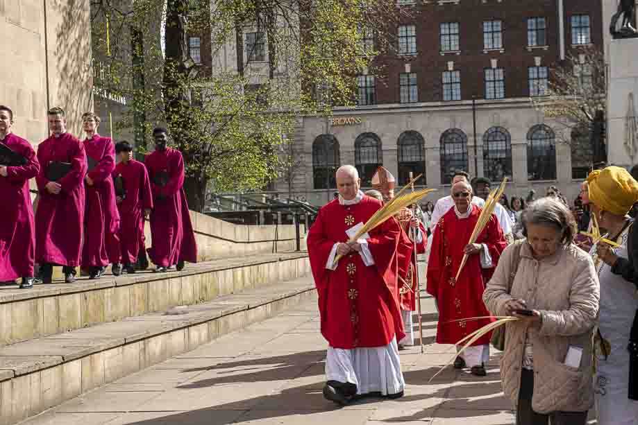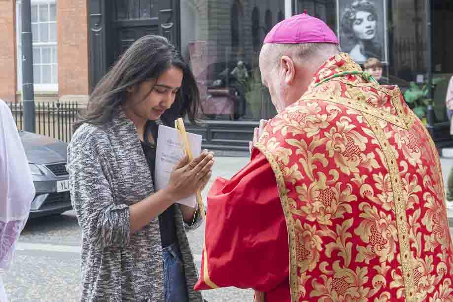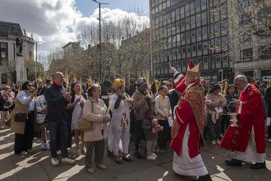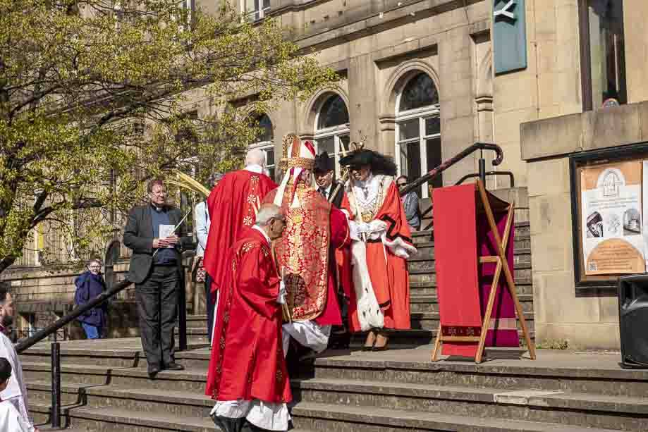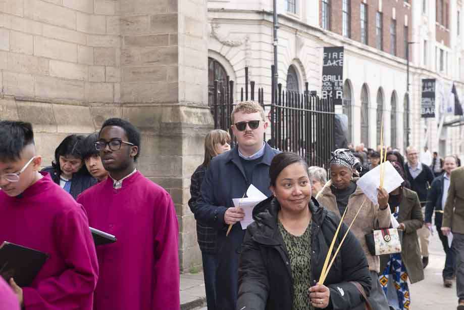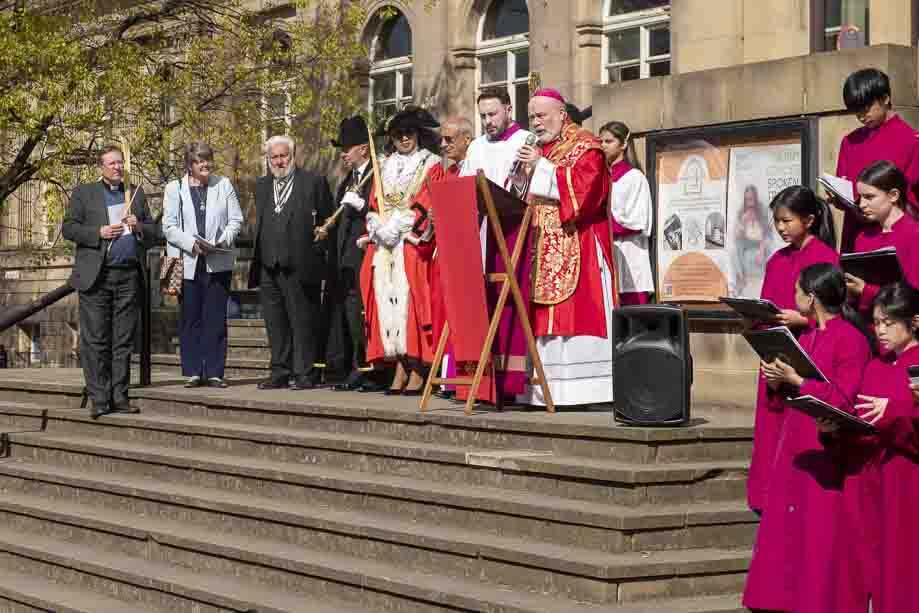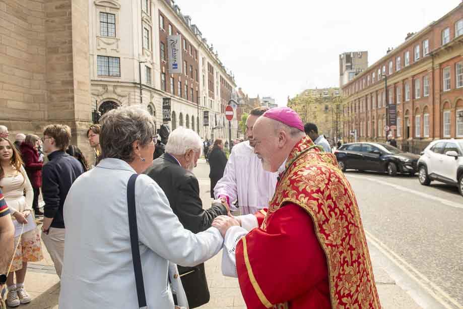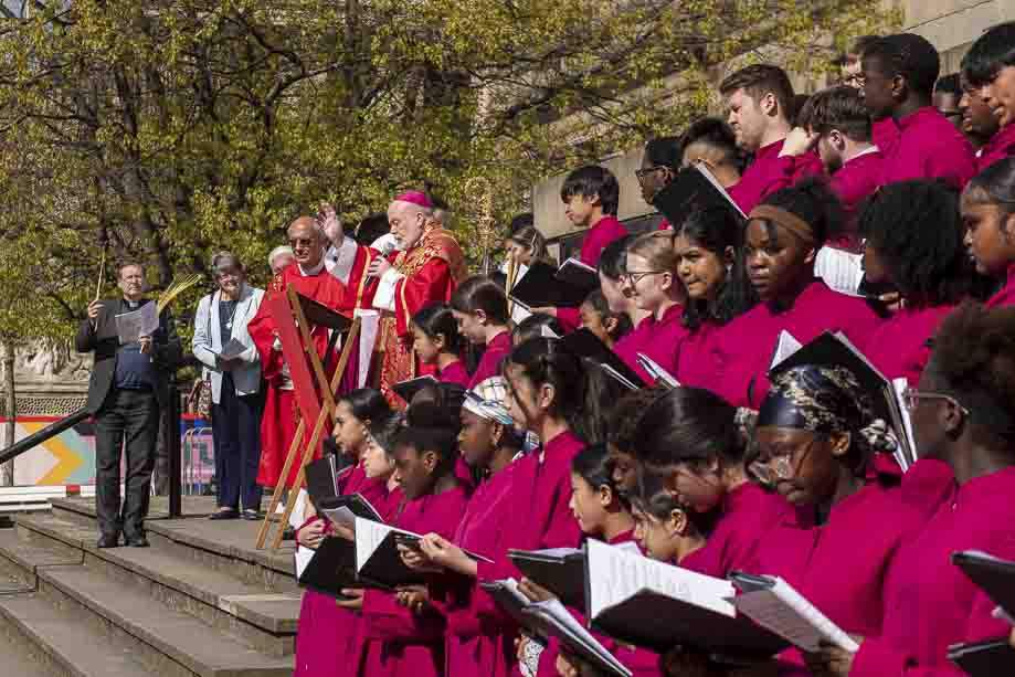 We began our Mass with the Blessing of Palms outside the Leeds Art Gallery, Victoria Gardens. The congregation processes into the Cathedral Church of St Anne.