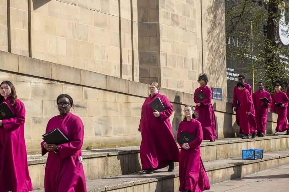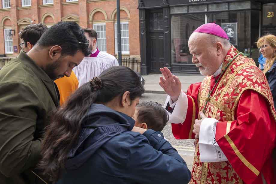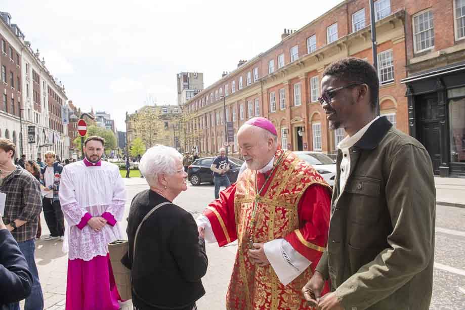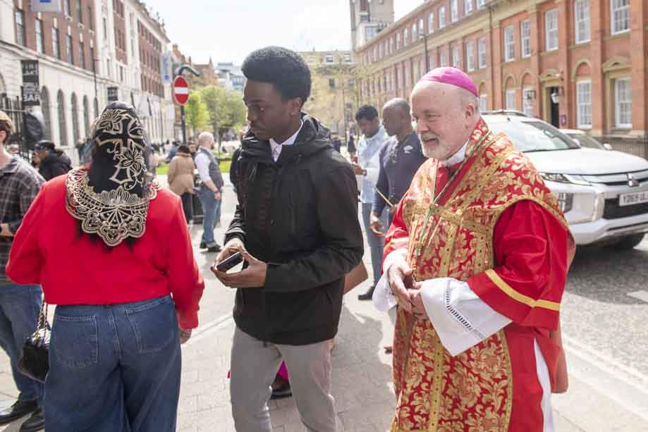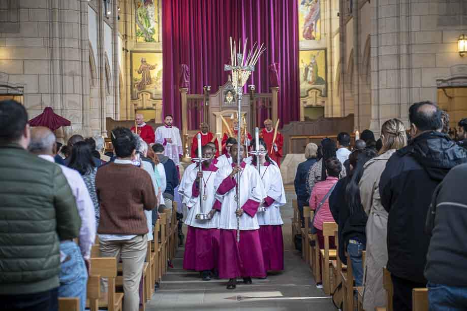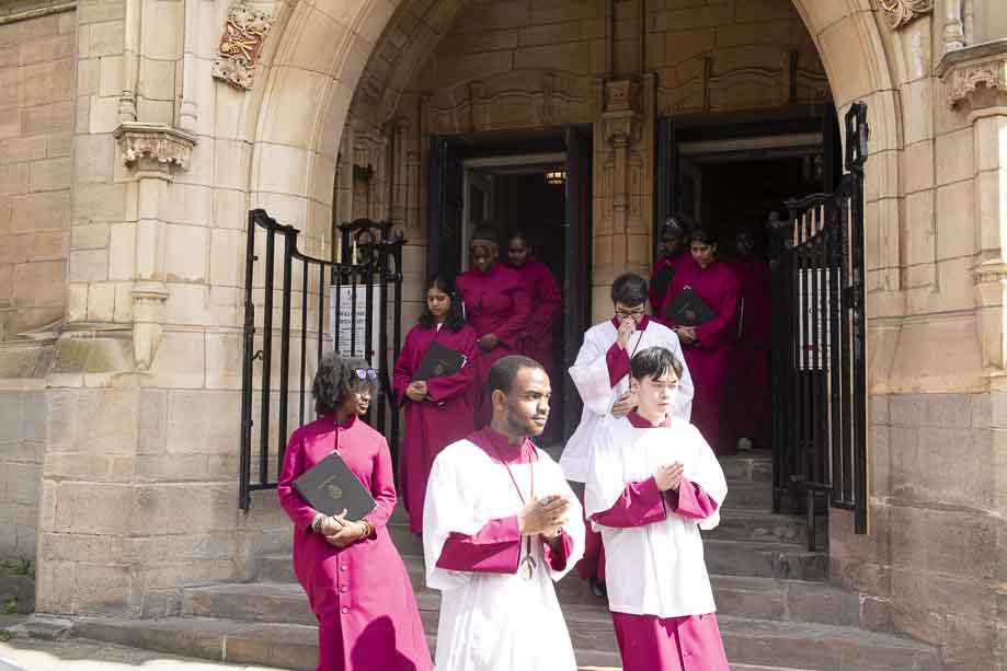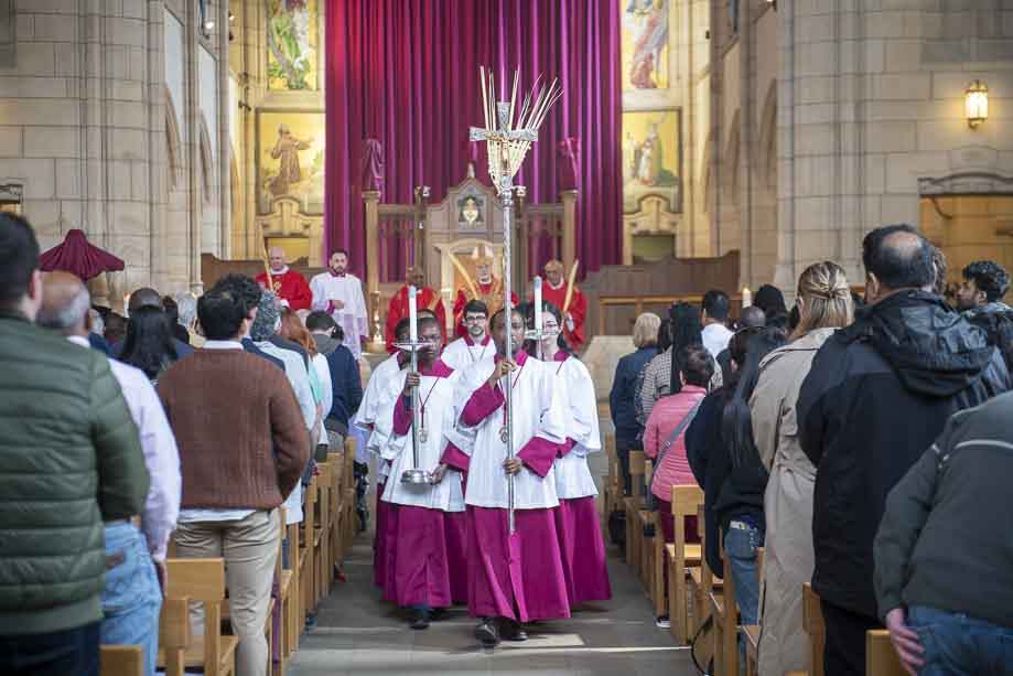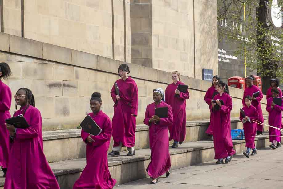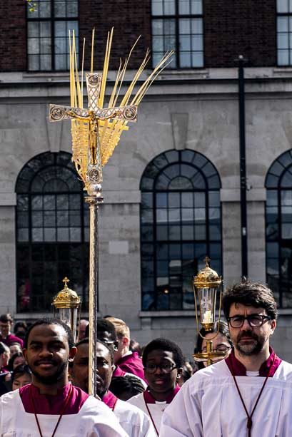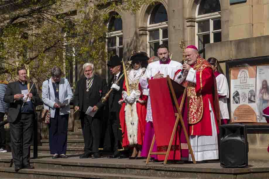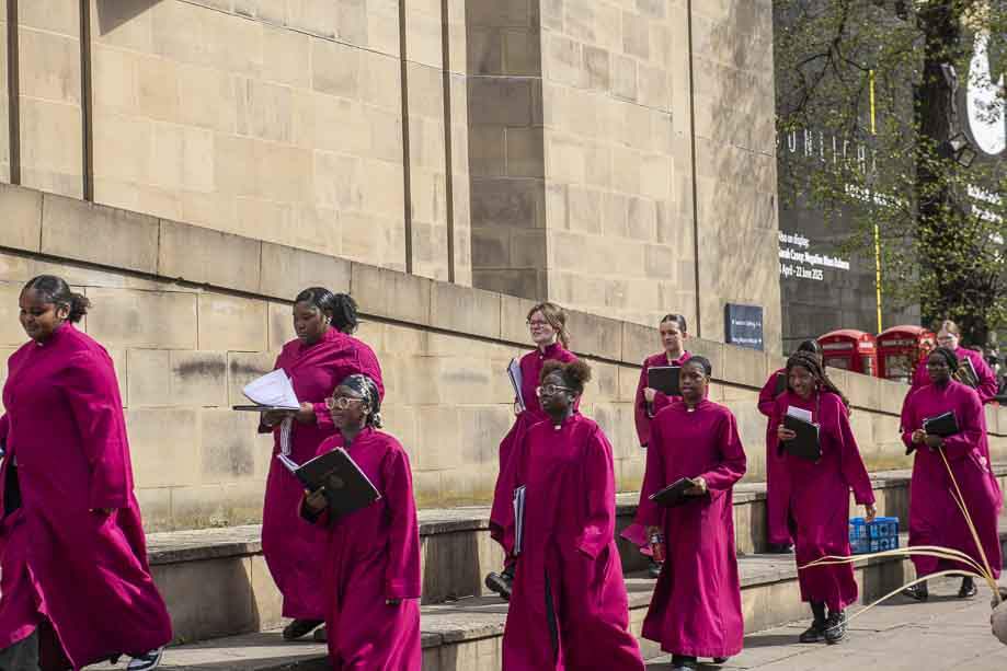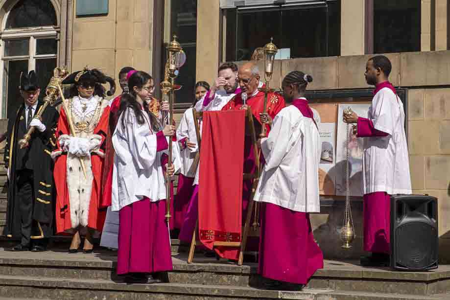 We began our Mass with the Blessing of Palms outside the Leeds Art Gallery, Victoria Gardens. The congregation processes into the Cathedral Church of St Anne.