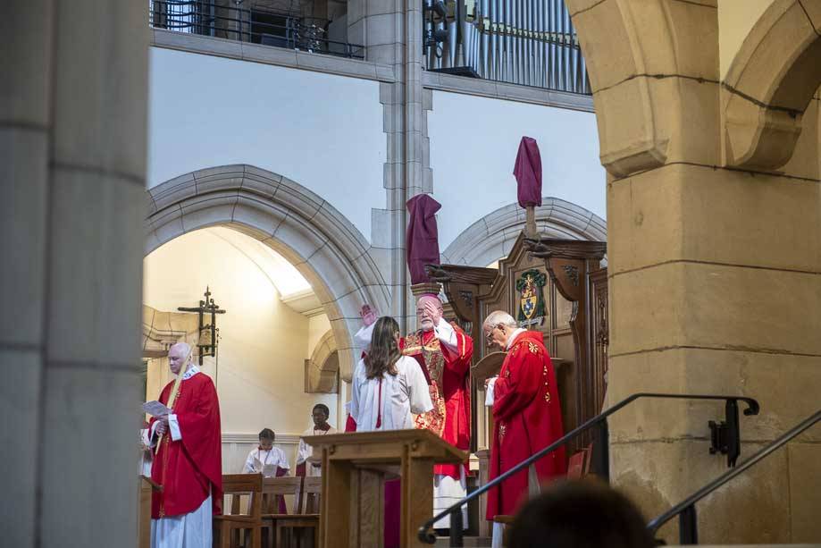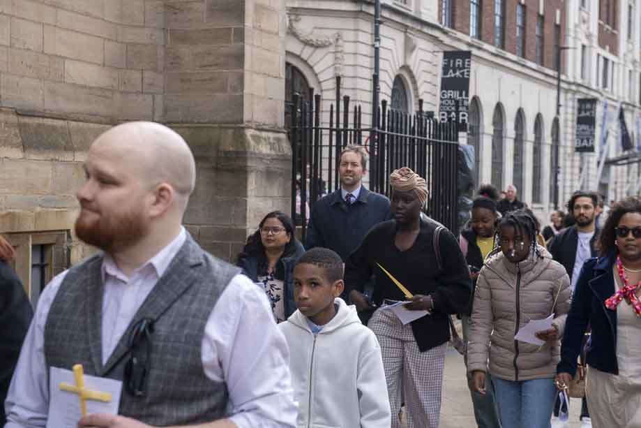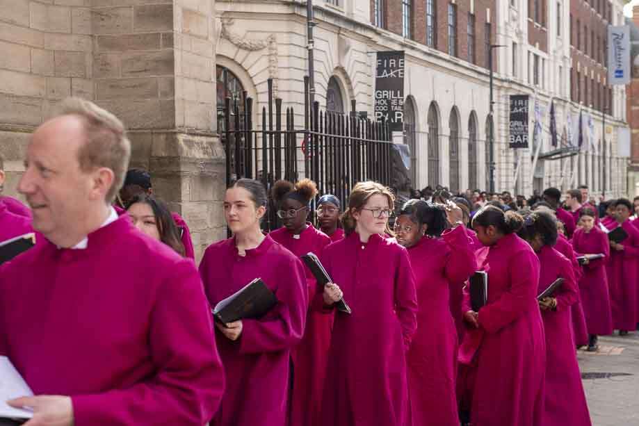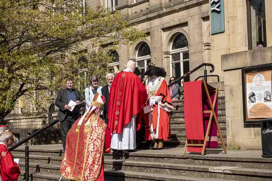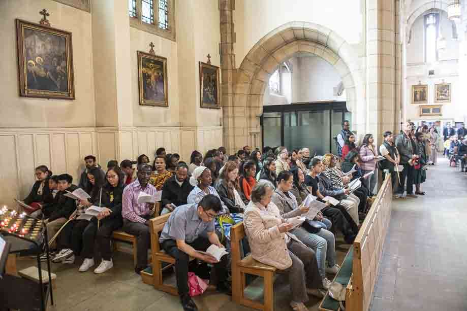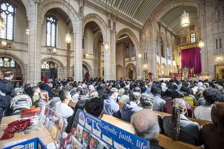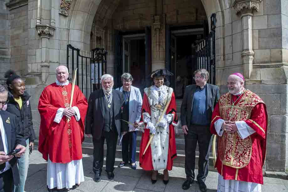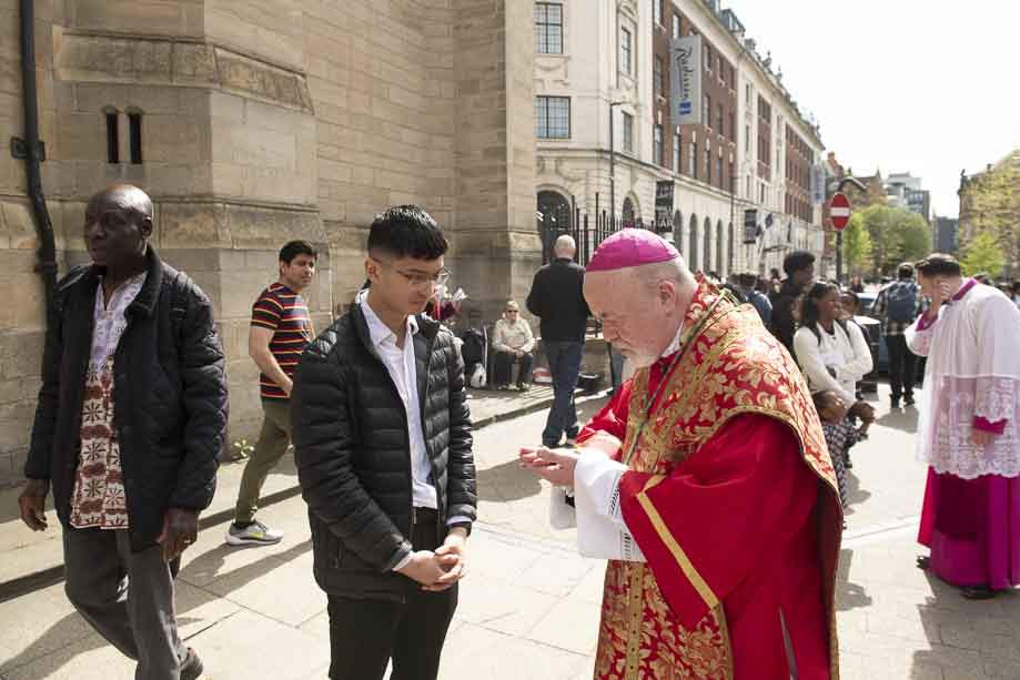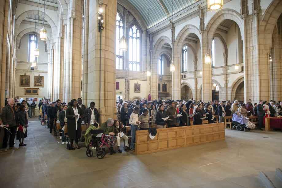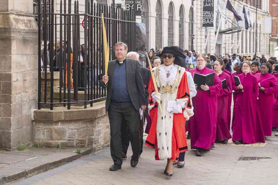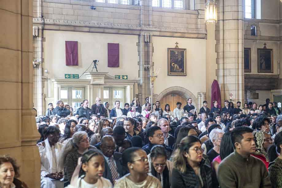 We began our Mass with the Blessing of Palms outside the Leeds Art Gallery, Victoria Gardens. The congregation processes into the Cathedral Church of St Anne.