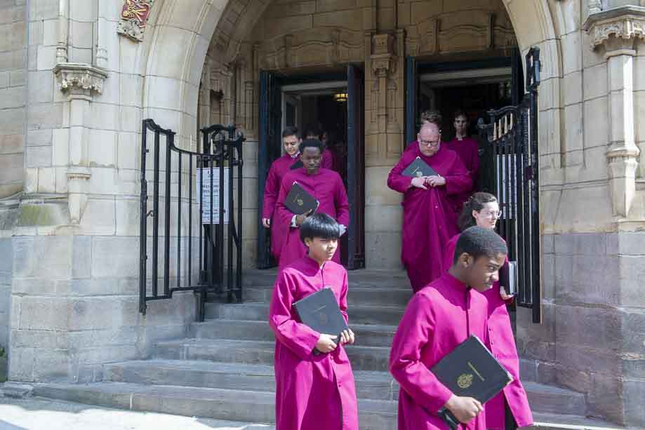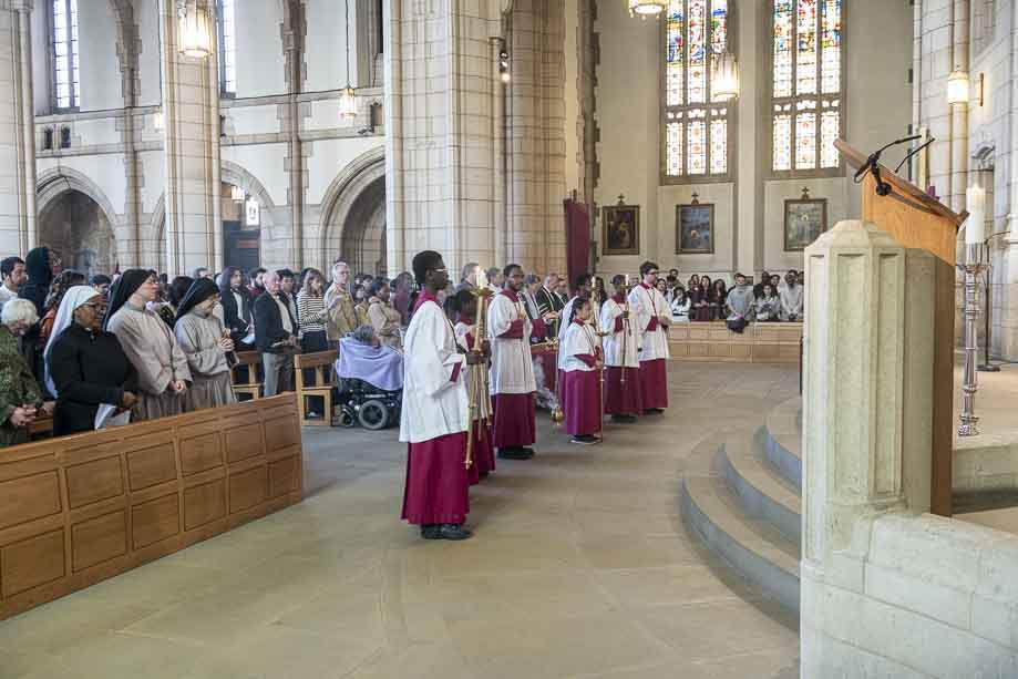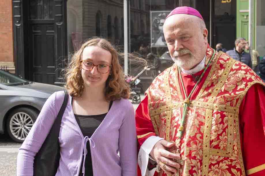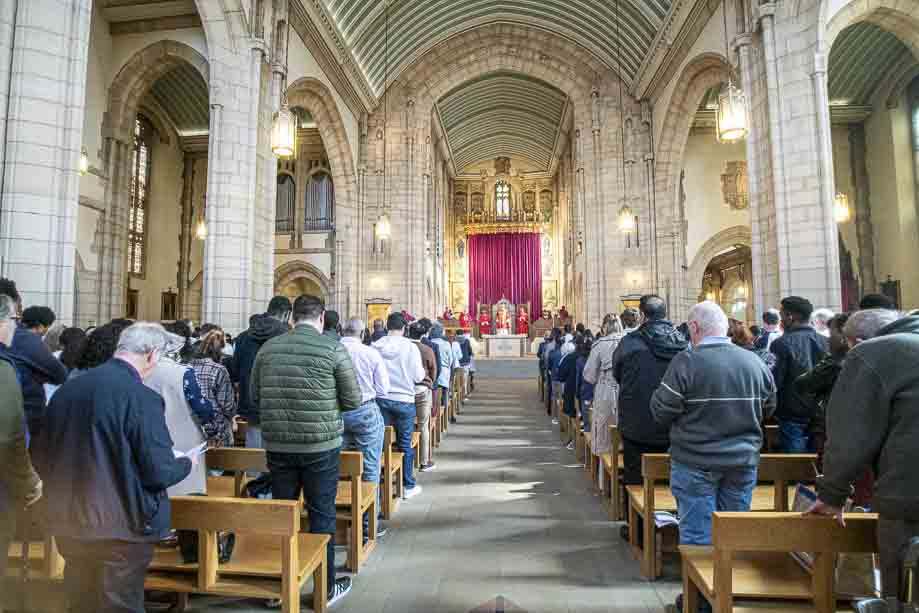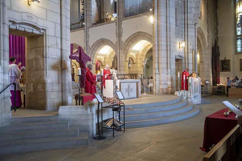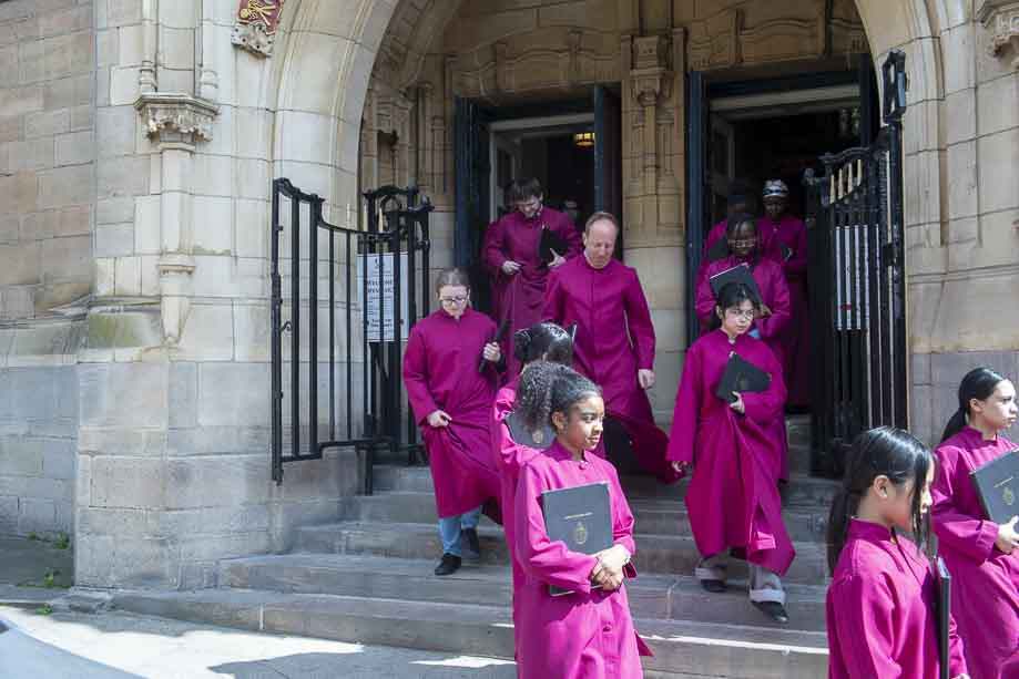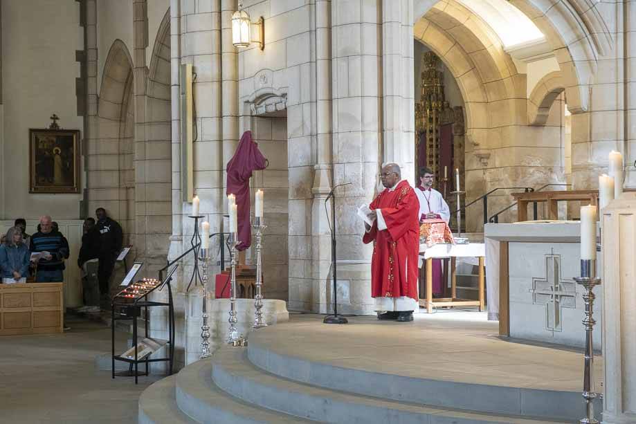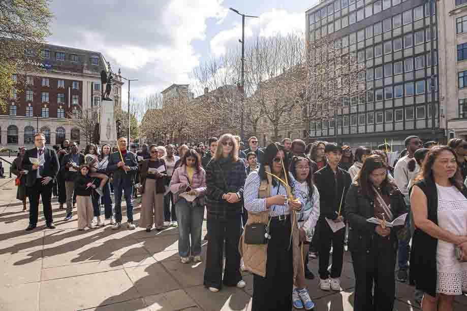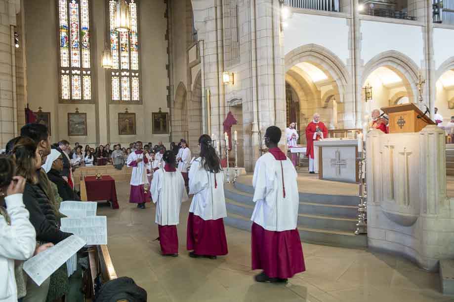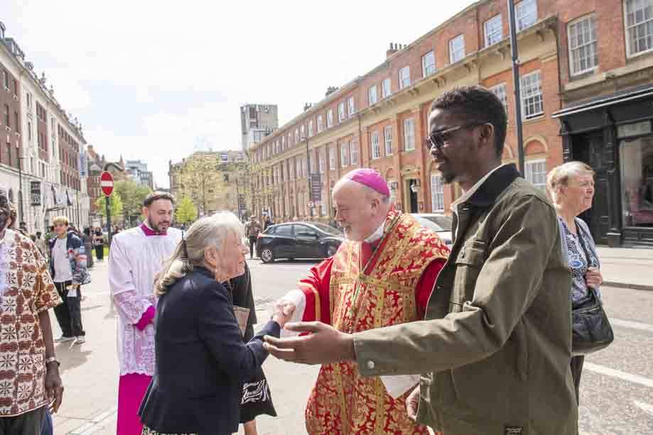 We began our Mass with the Blessing of Palms outside the Leeds Art Gallery, Victoria Gardens. The congregation processes into the Cathedral Church of St Anne.