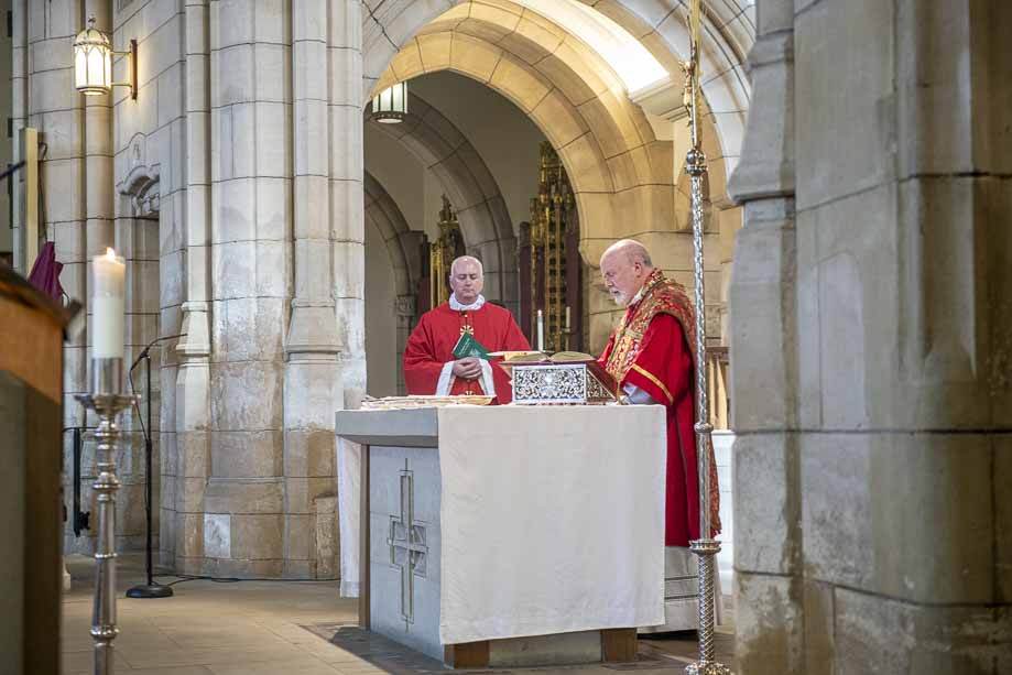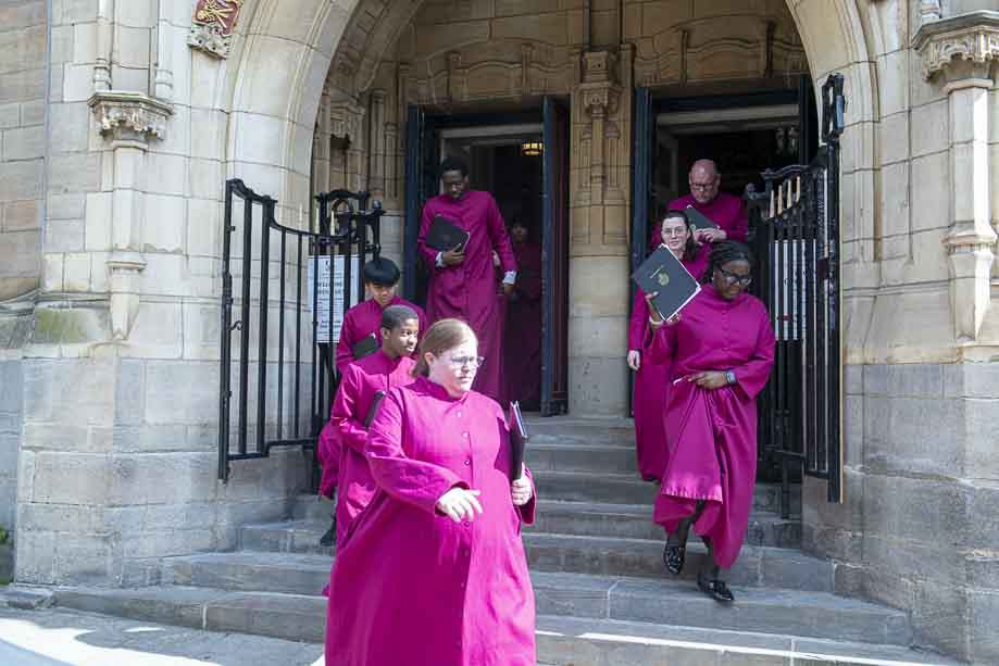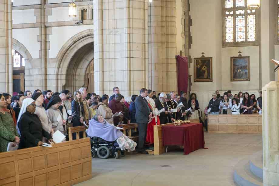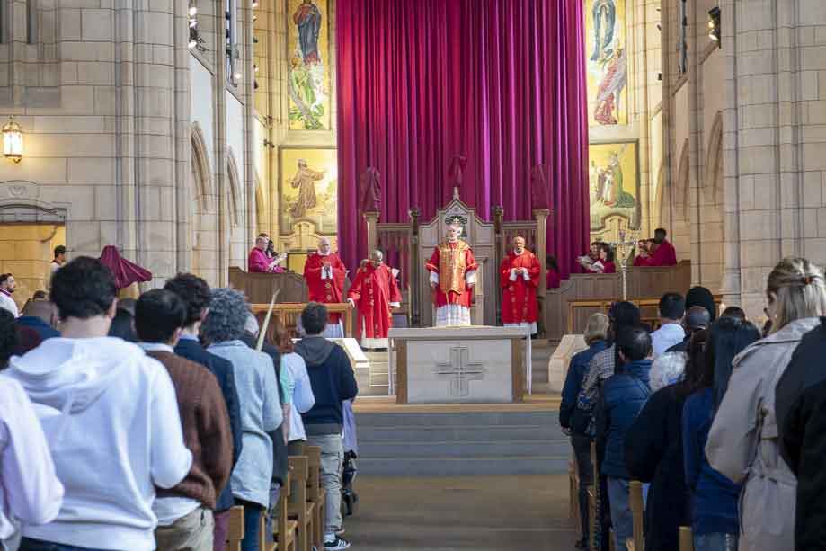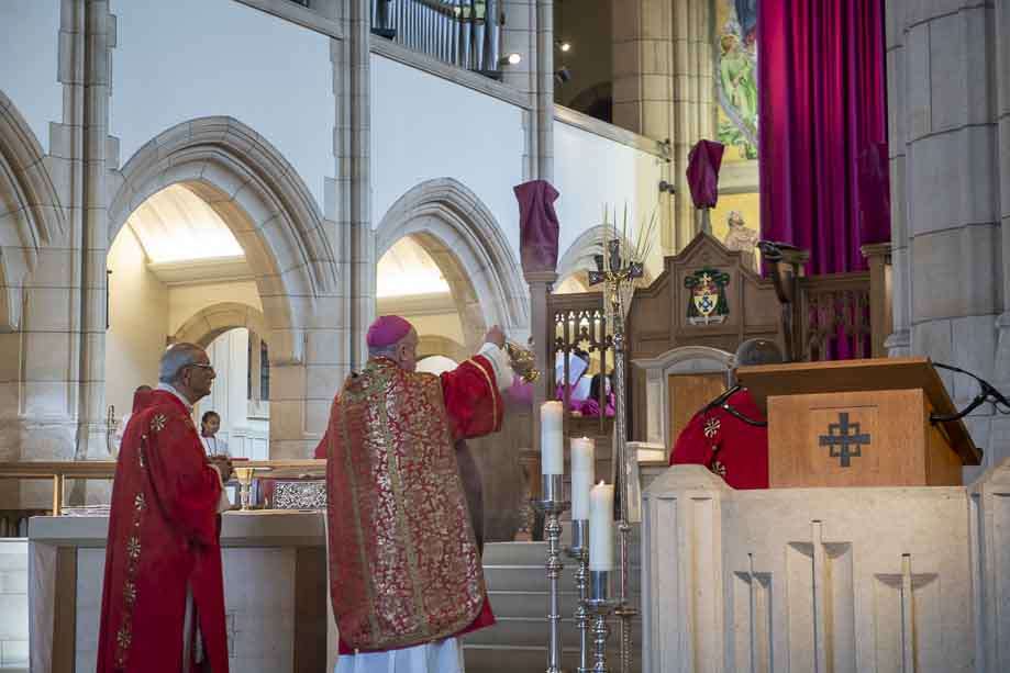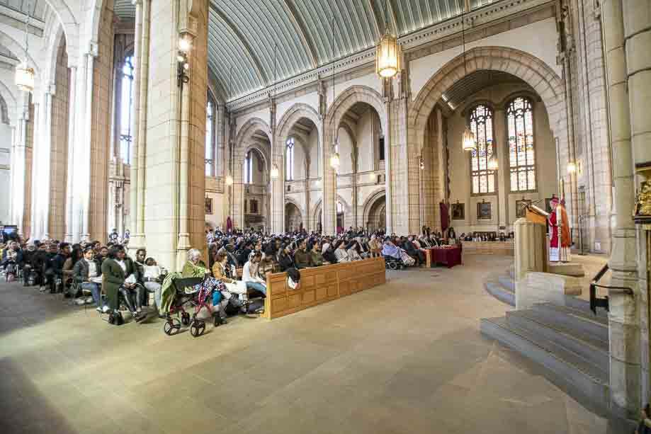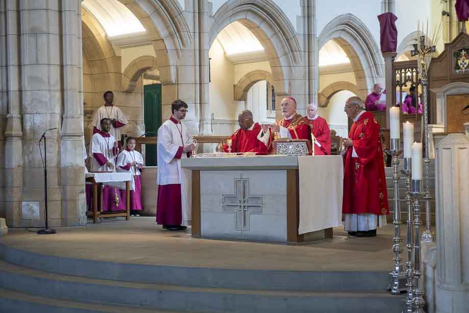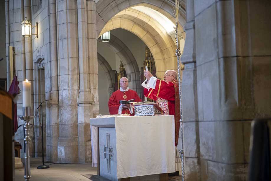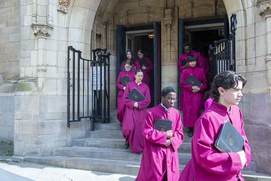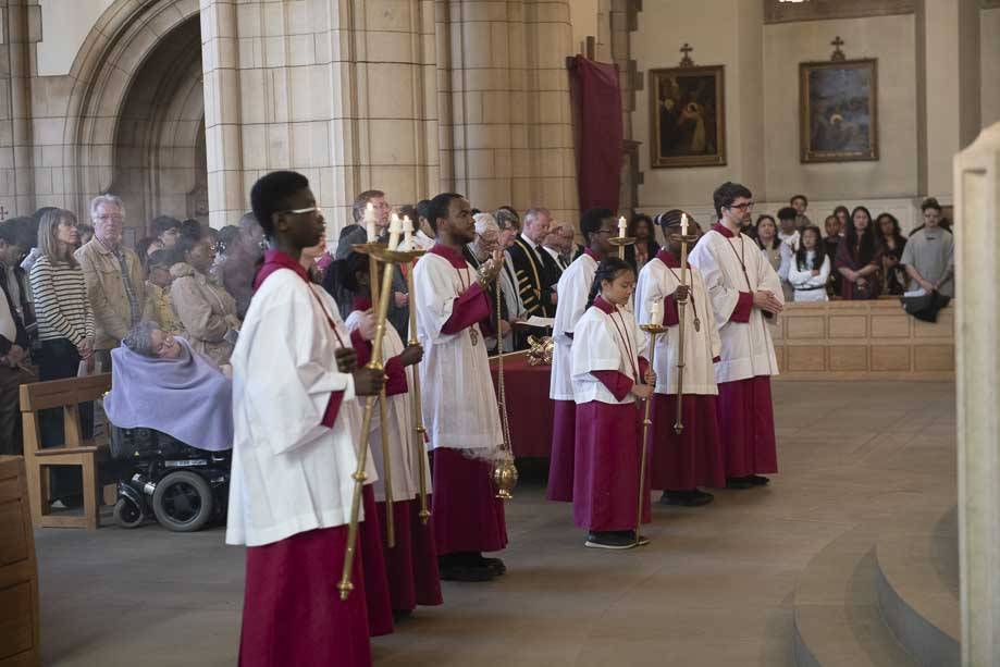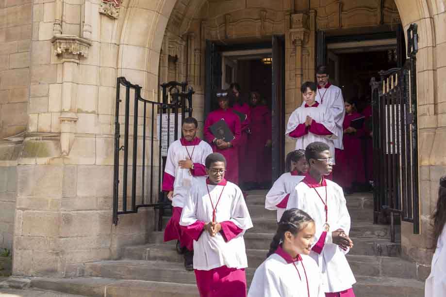 We began our Mass with the Blessing of Palms outside the Leeds Art Gallery, Victoria Gardens. The congregation processes into the Cathedral Church of St Anne.