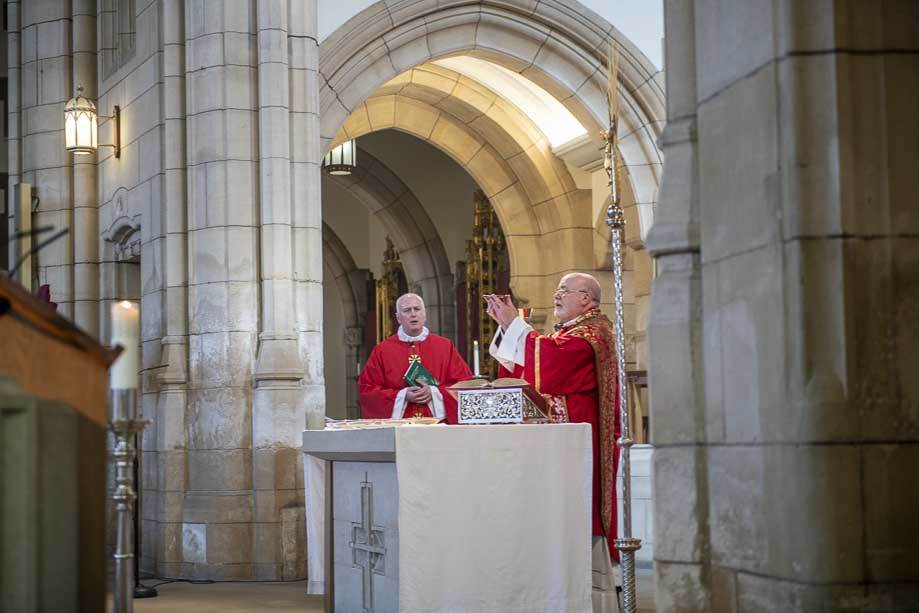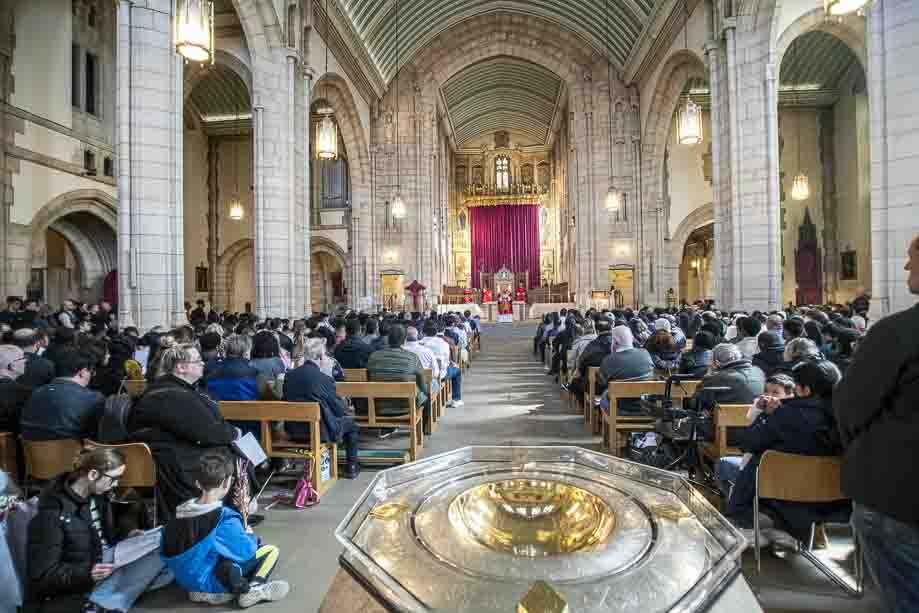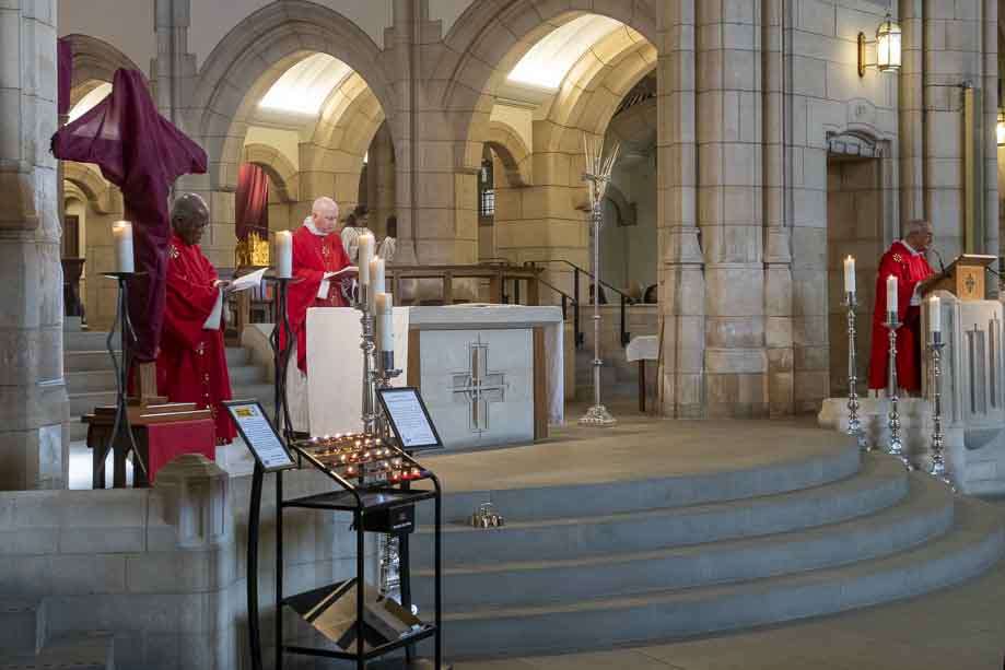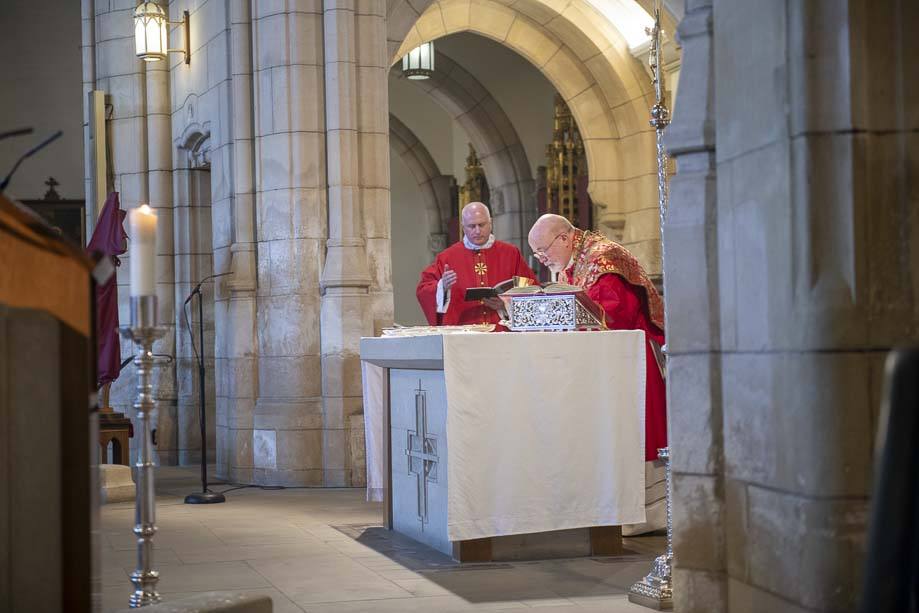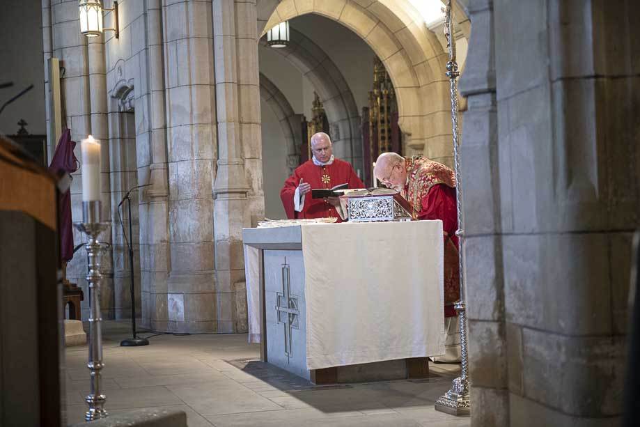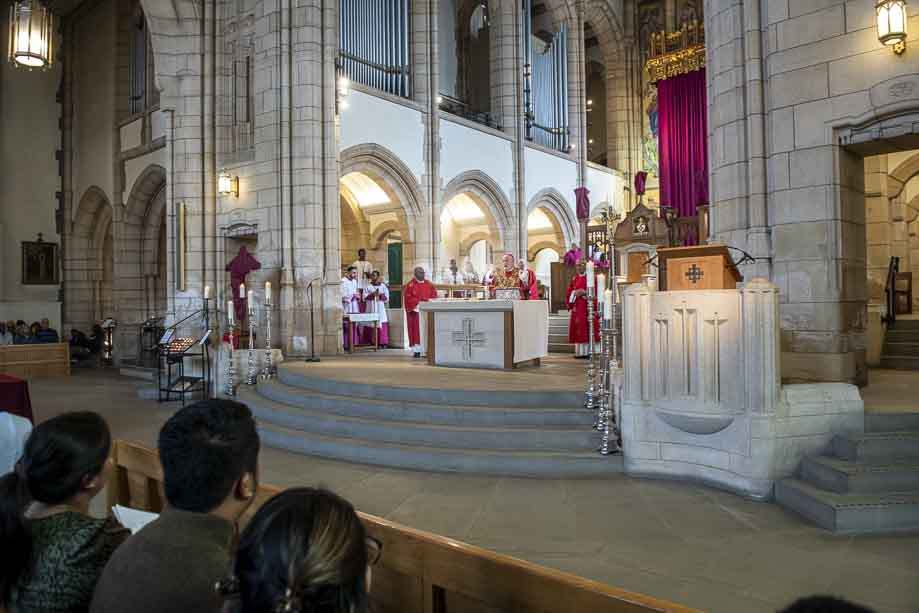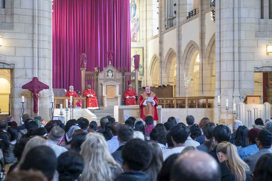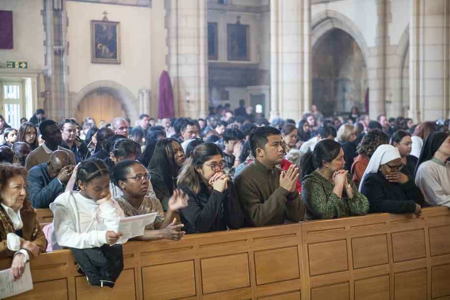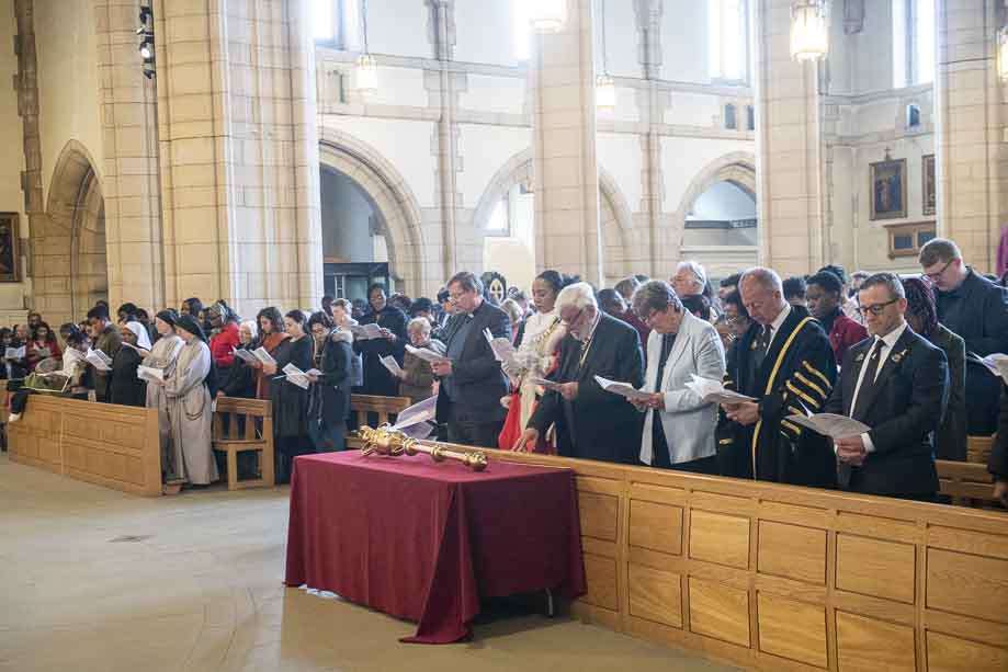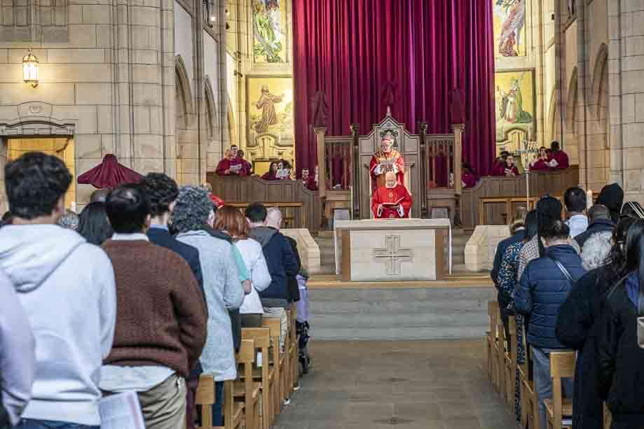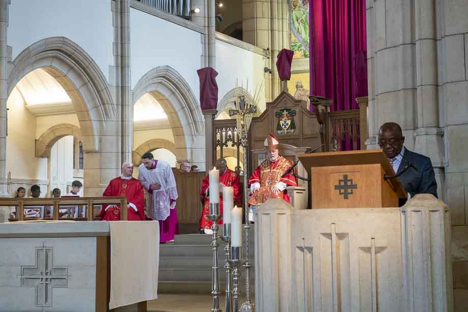 We began our Mass with the Blessing of Palms outside the Leeds Art Gallery, Victoria Gardens. The congregation processes into the Cathedral Church of St Anne.