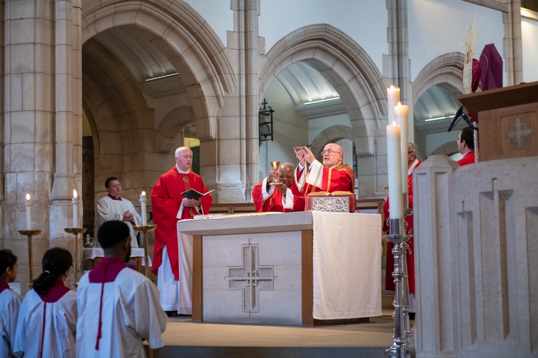 Here in Leeds, we started our service today in Victoria Gardens opposite the entrance to the City Art Gallery where Bishop Marcus blessed the Palms followed by the procession to the Cathedral Church of St Anne where Mass was celebrated by Right Reverend Marcus Nigel Stock, MA, STL, Tenth Bishop of Leeds, Very Rev Canon Matthew Habron and Rev Fr Marc Homsey and master of ceremonies Rev Father Sean Crawley.